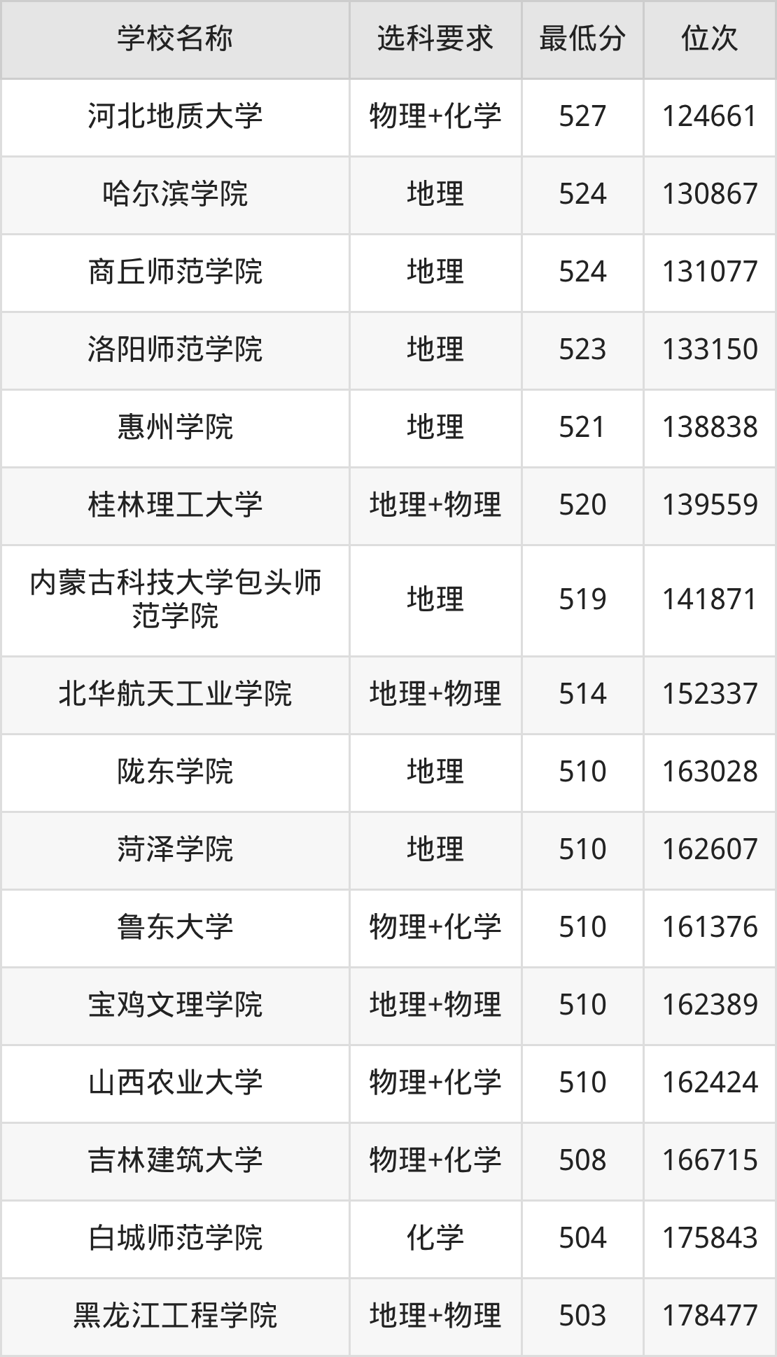 这里以河北、山东2025年招录数据为例,为大家列举地理信息科学专业院校的收分门槛。