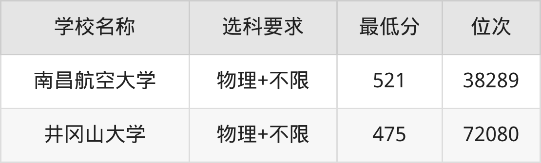 在贵州招生的院校中,有2所不限选科要求(物理组),如南昌航空大学、井冈山大学。