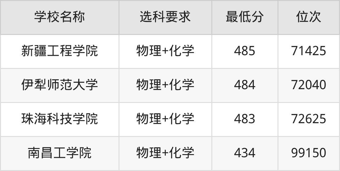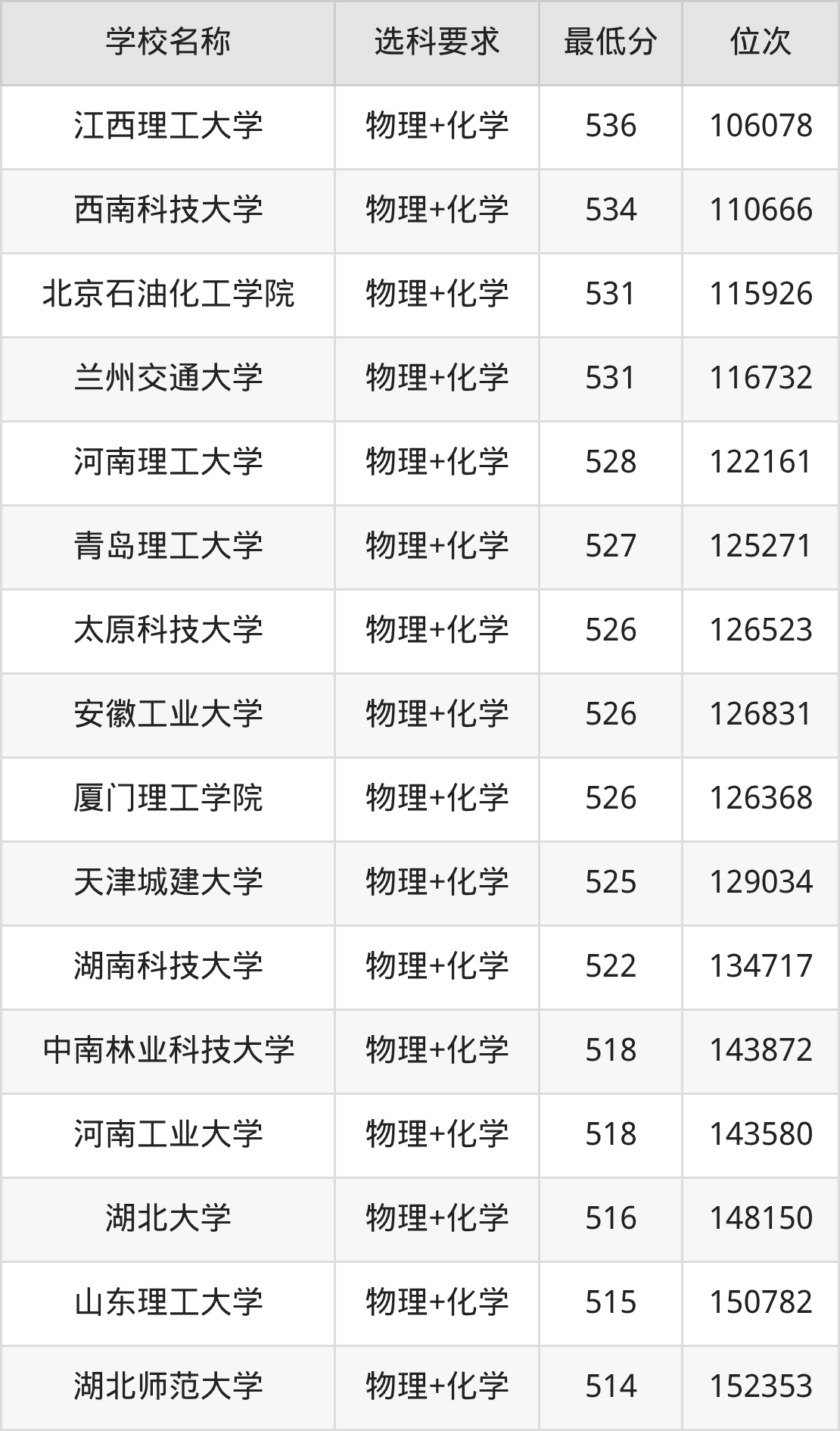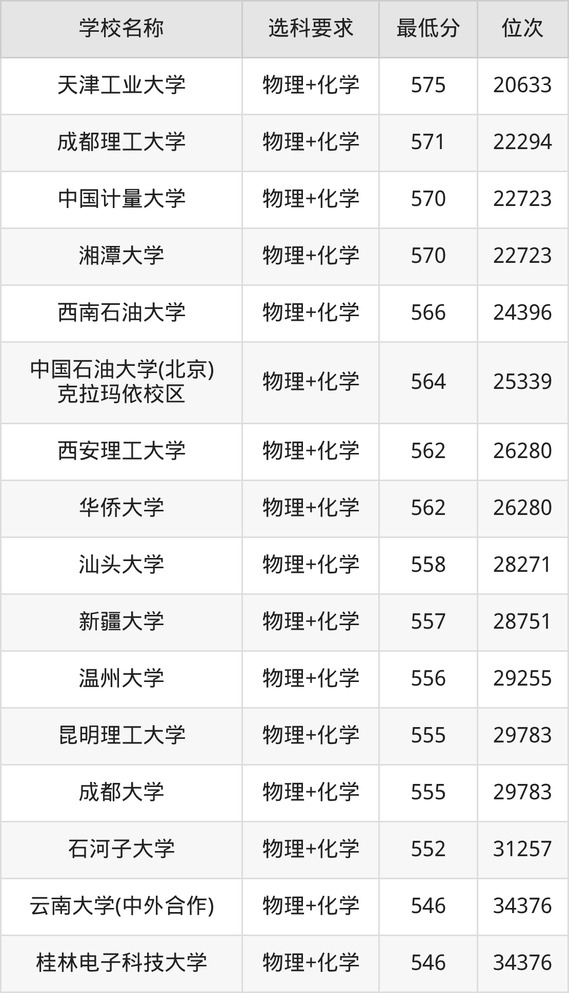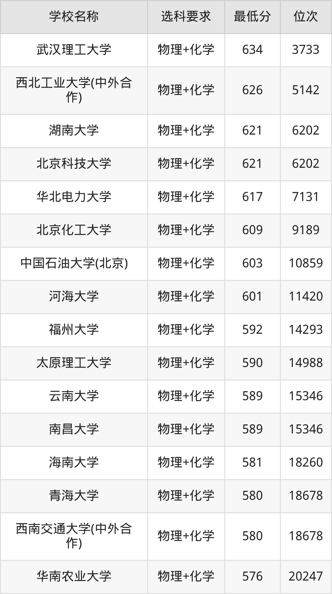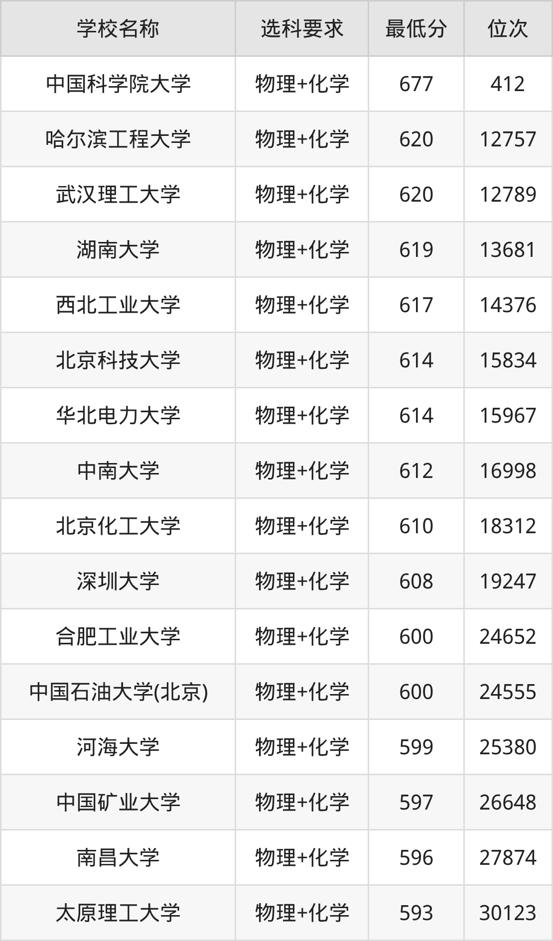 在重庆招生的院校中,有68所要求考生必选“物理+化学”,如武汉理工大学、西北工业大学(中外合作)等。