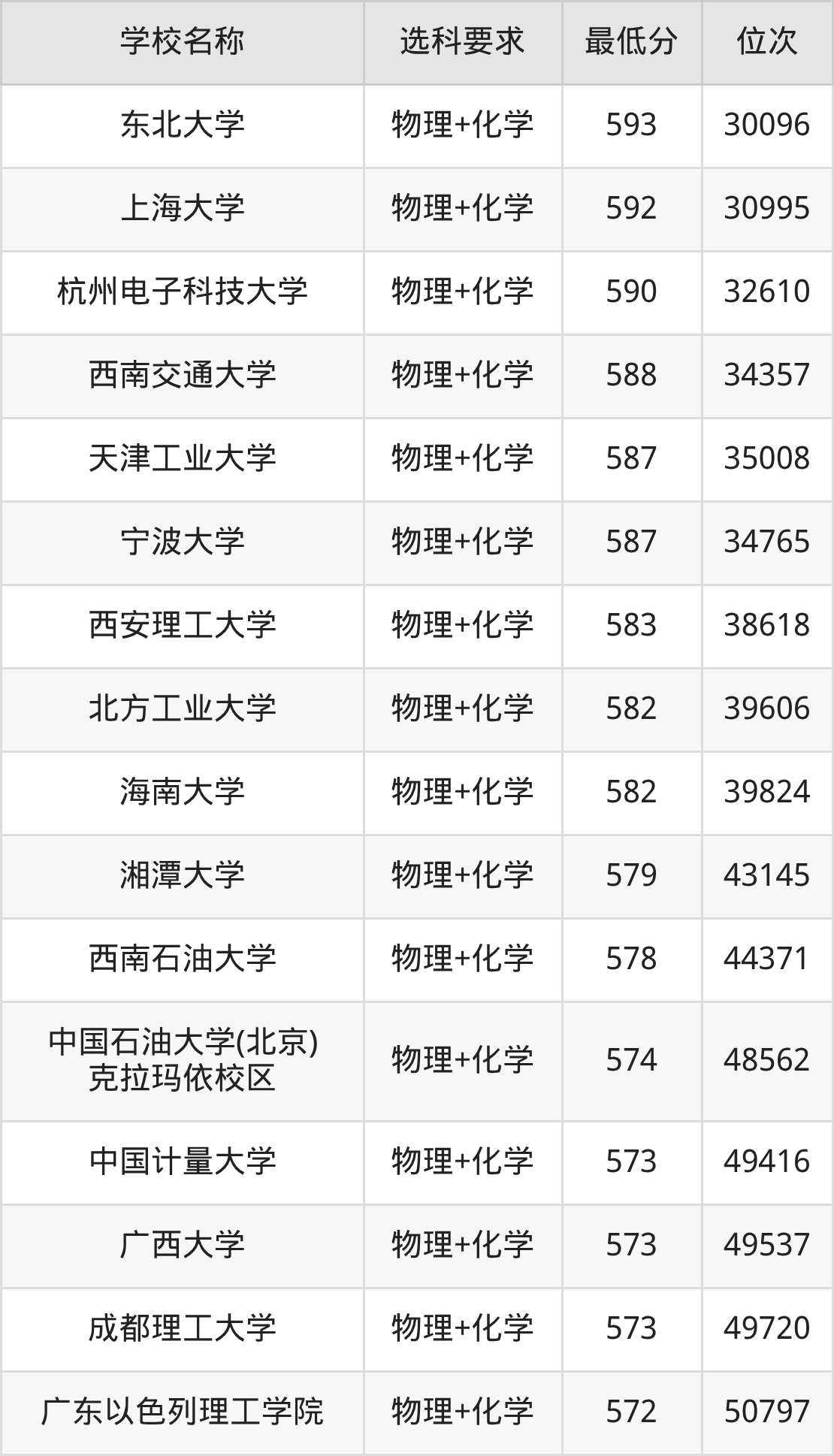 需要注意的是,材料科学与工程专业大学中有100所要求考生必选“物理+化学”,如中国科学院大学、哈尔滨工程大学等,因此大家在报考前要提前了解清楚专业选科要求。