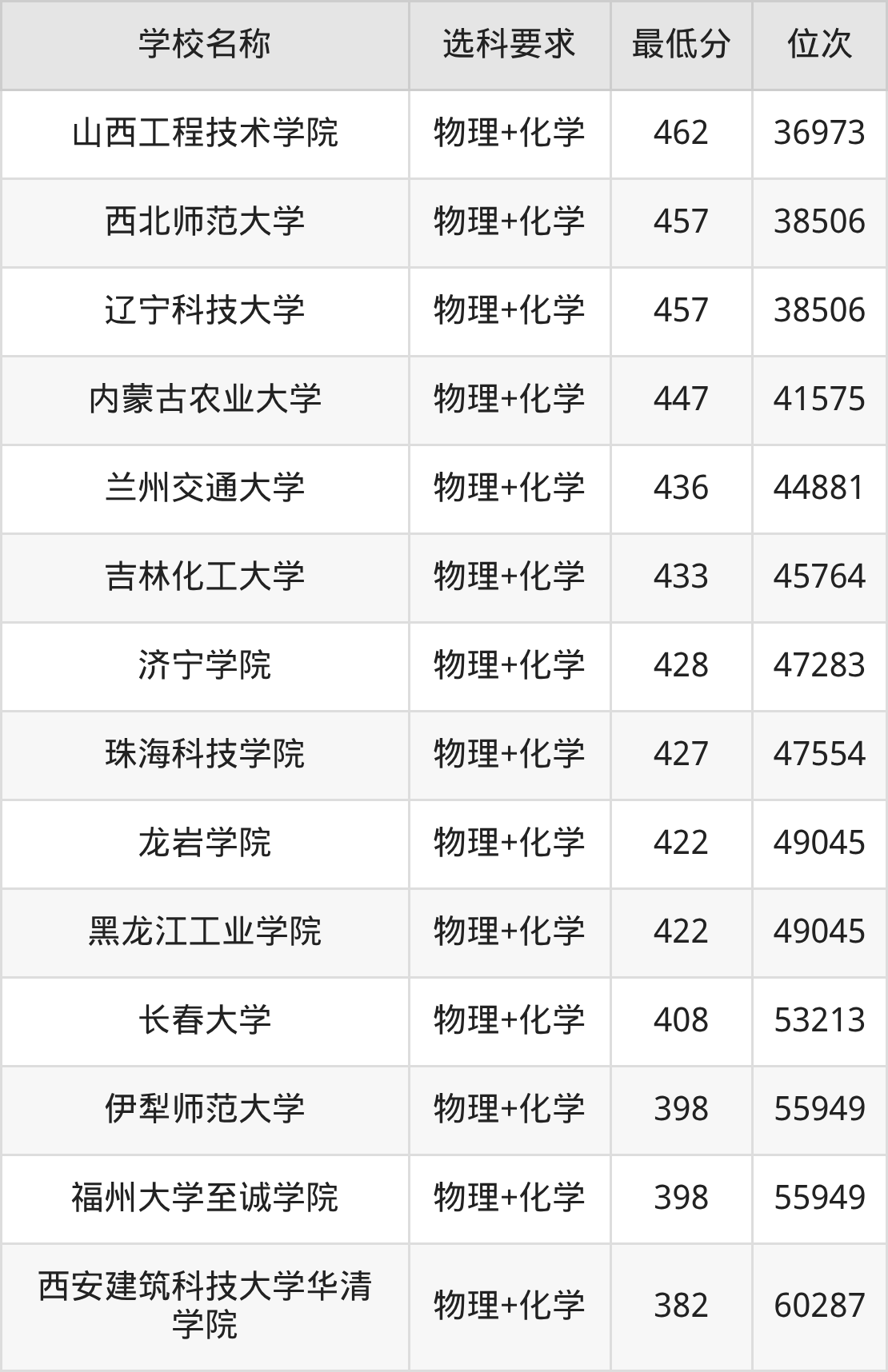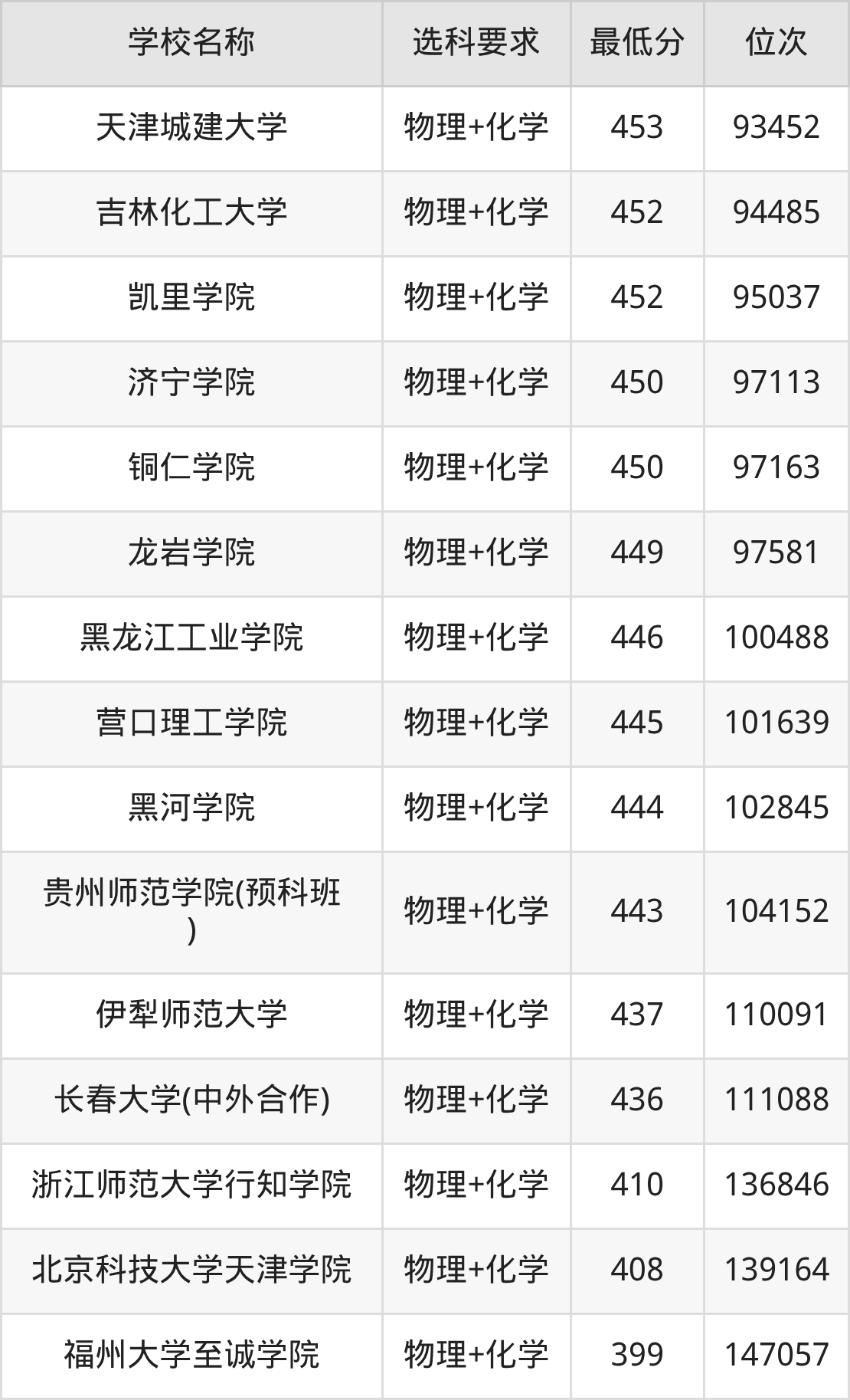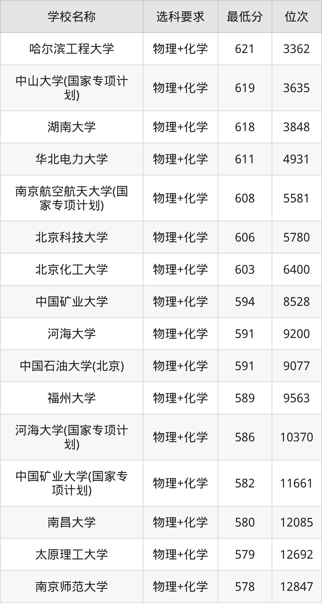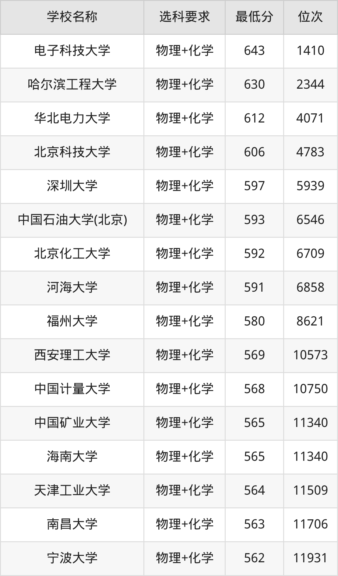 在吉林招生的院校中,有62所要求考生必选“物理+化学”,如电子科技大学、哈尔滨工程大学等。