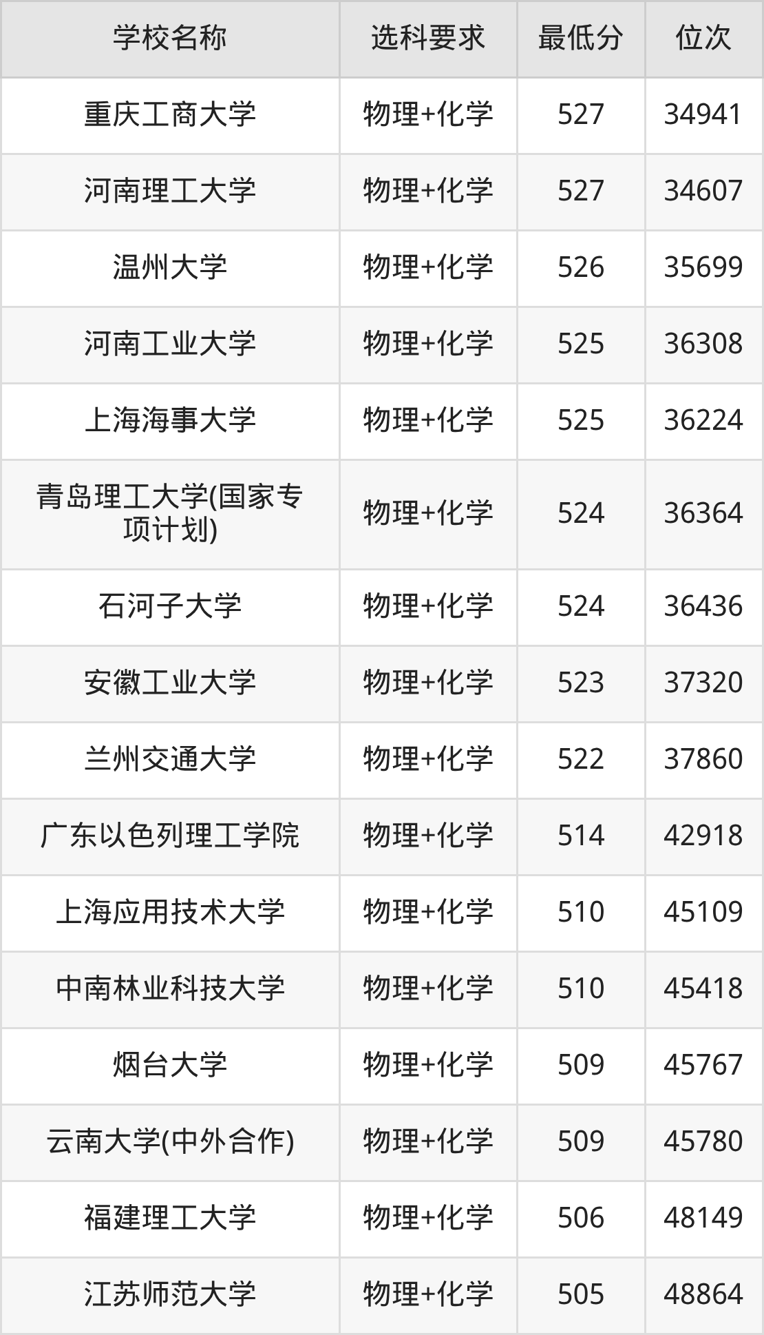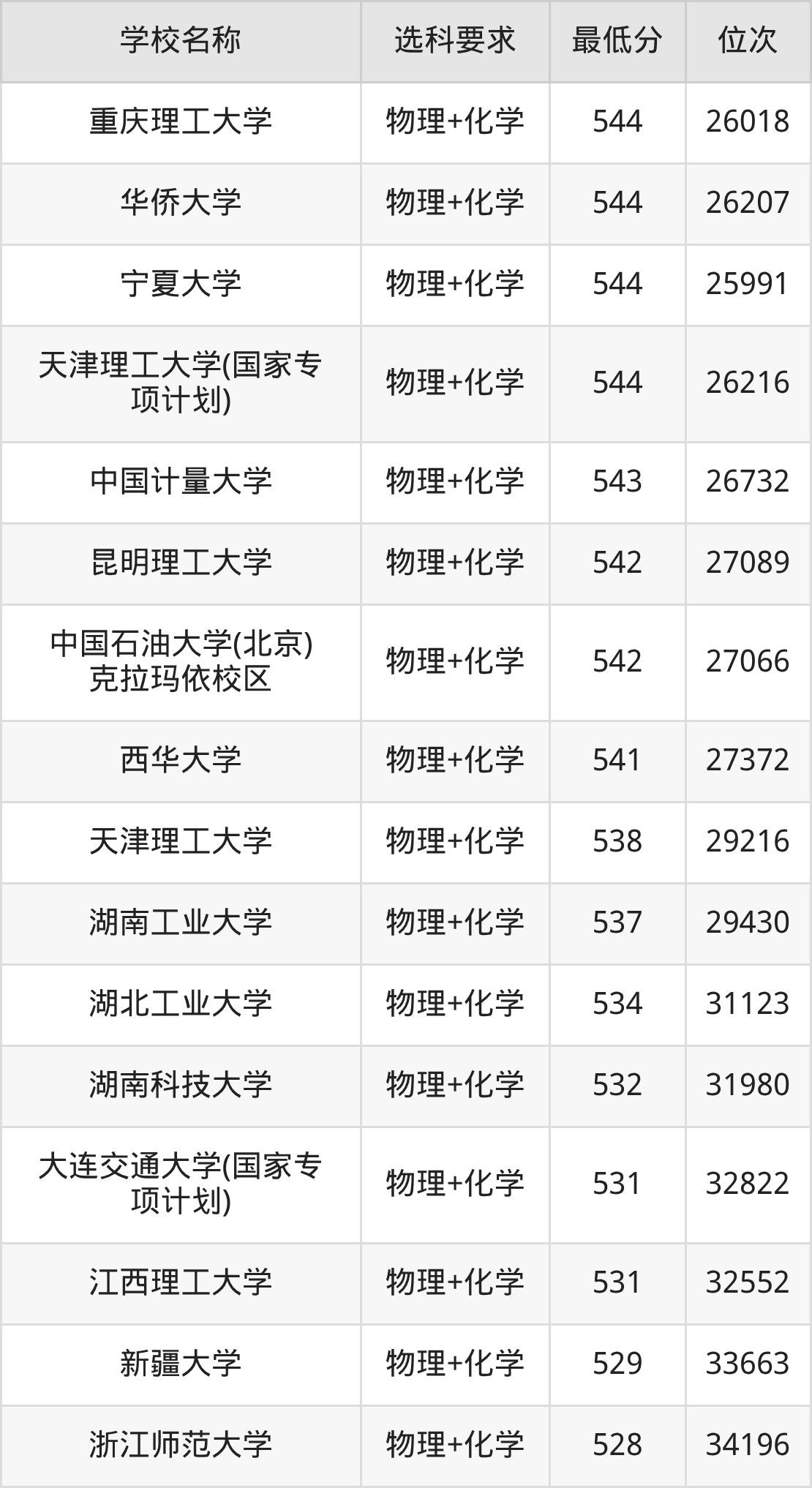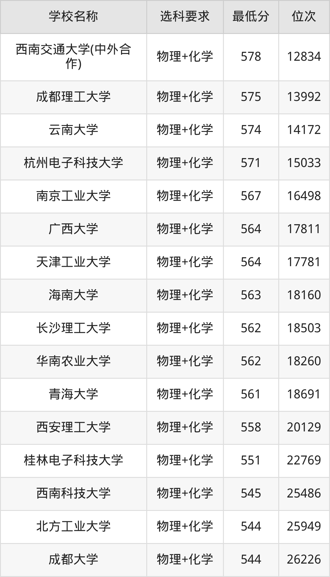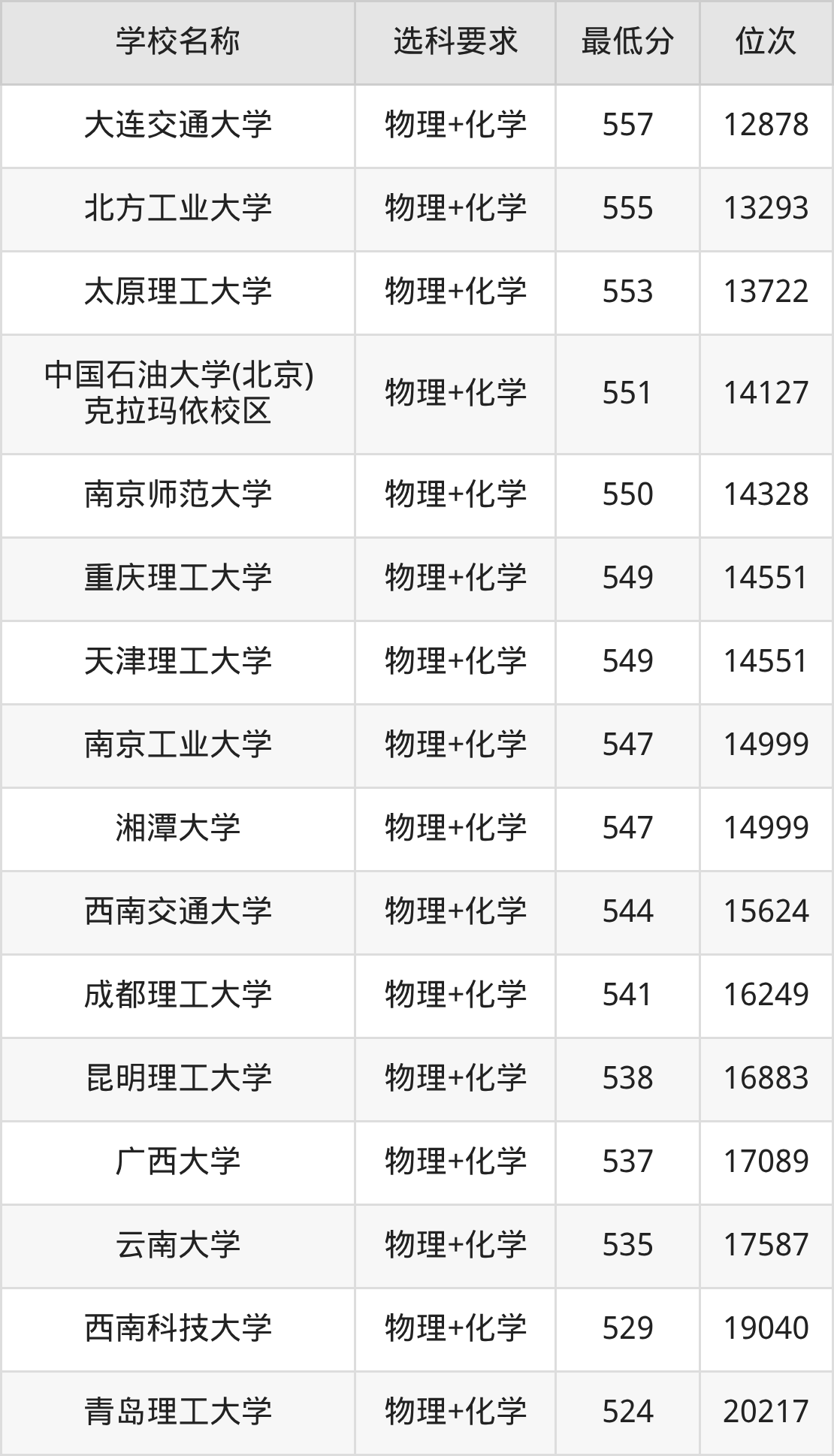 在吉林招生的院校中,有62所要求考生必选“物理+化学”,如电子科技大学、哈尔滨工程大学等。
