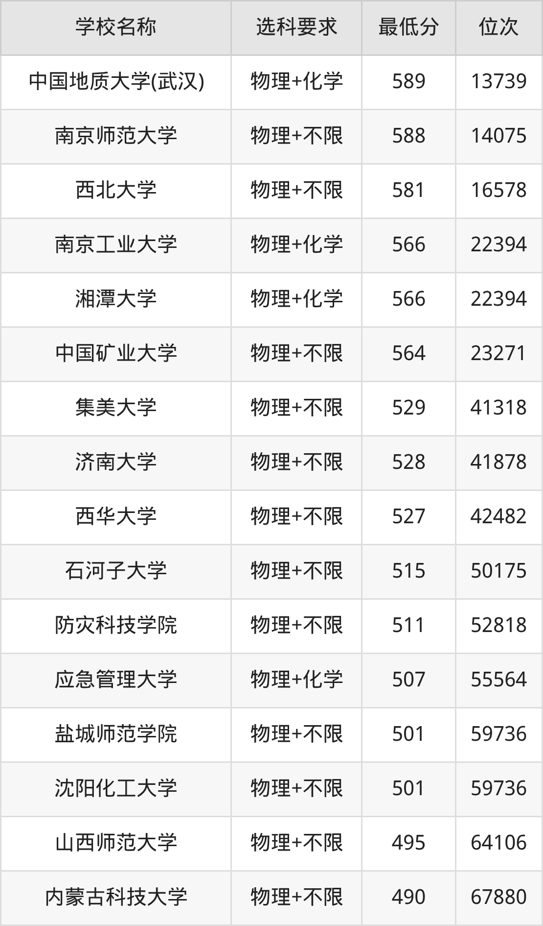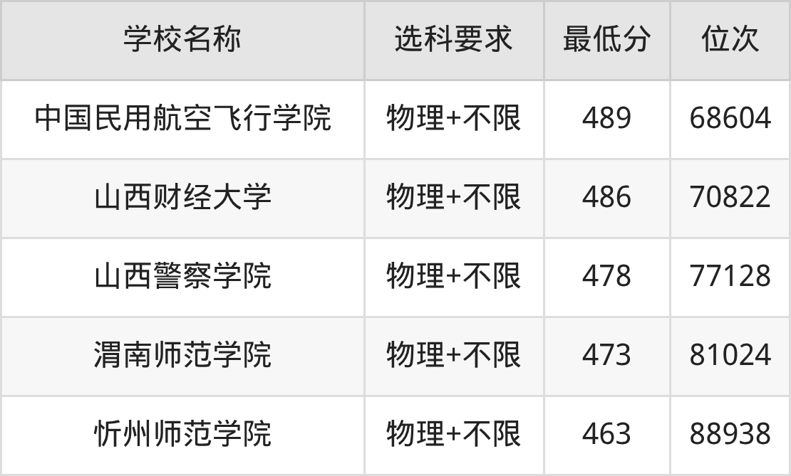 在山西招生的院校中,有17所不限选科要求(物理组),如南京师范大学、西北大学等;有4所要求考生必选“物理+化学”,如中国地质大学(武汉)、南京工业大学等。