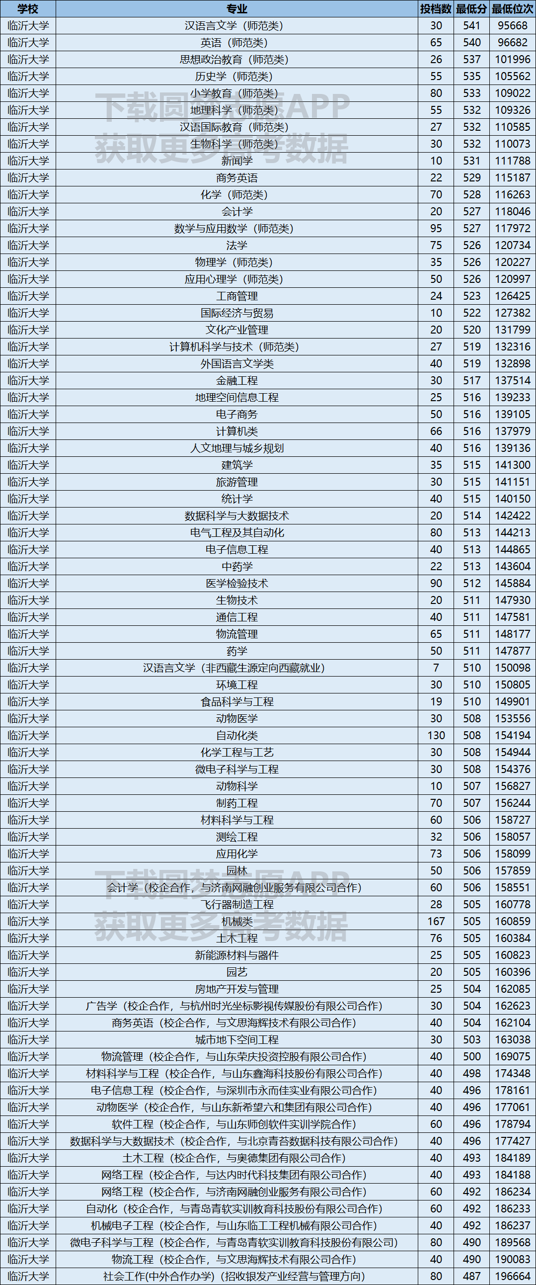 根据山东省2020年普通类常规批第1次志愿投档情况表,我们为大家整理了2020年临沂大学在山东省各专业录取分数线和位次,具体如下。