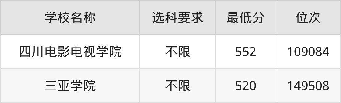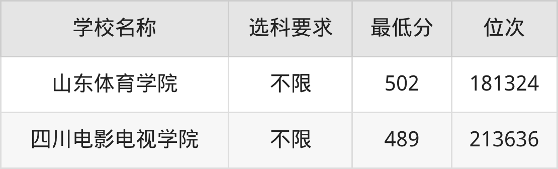 在山东招生的院校中,有2所不限选科要求,如山东体育学院、四川电影电视学院。