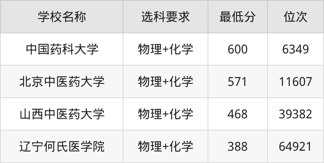 在山东招生的院校中,有4所要求考生必选“物理+化学”,如北京中医药大学、中国药科大学等;有4所要求考生必选“化学”,如沈阳药科大学、长春中医药大学等。