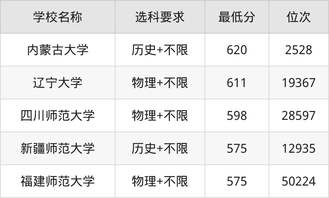 需要注意的是,纪检监察专业大学中有3所不限选科要求(物理组),如辽宁大学、四川师范大学等;有2所不限选科要求(历史组),如内蒙古大学、新疆师范大学,因此大家在报考前要提前了解清楚专业选科要求。