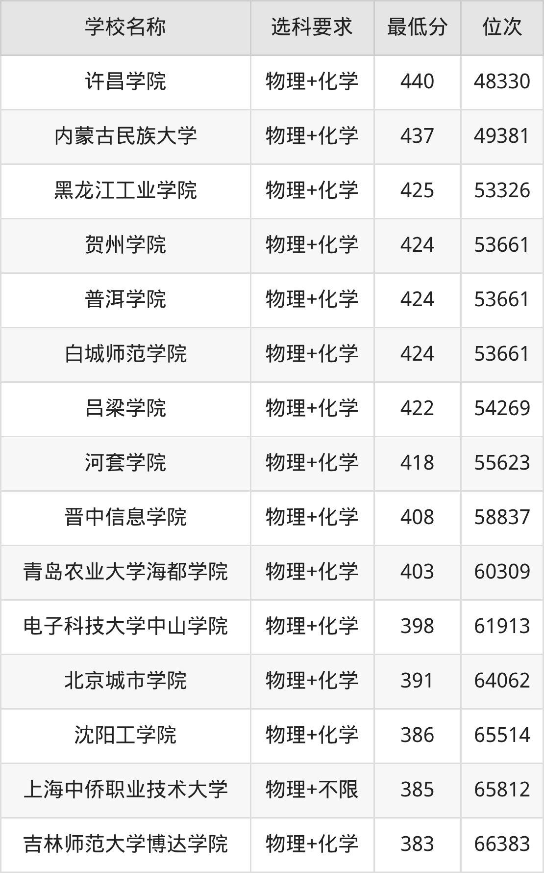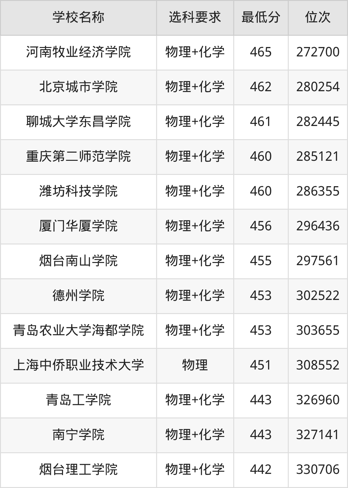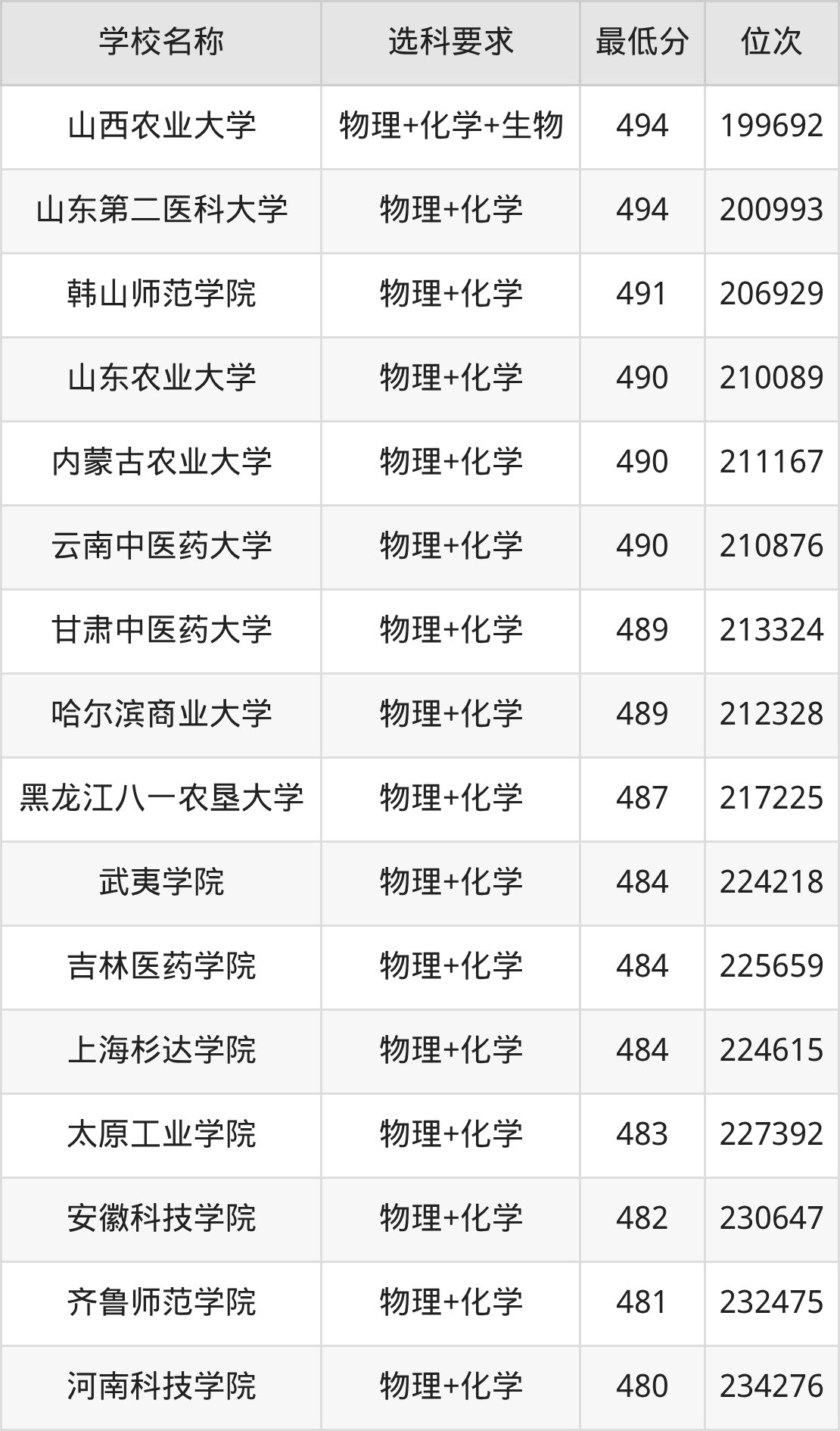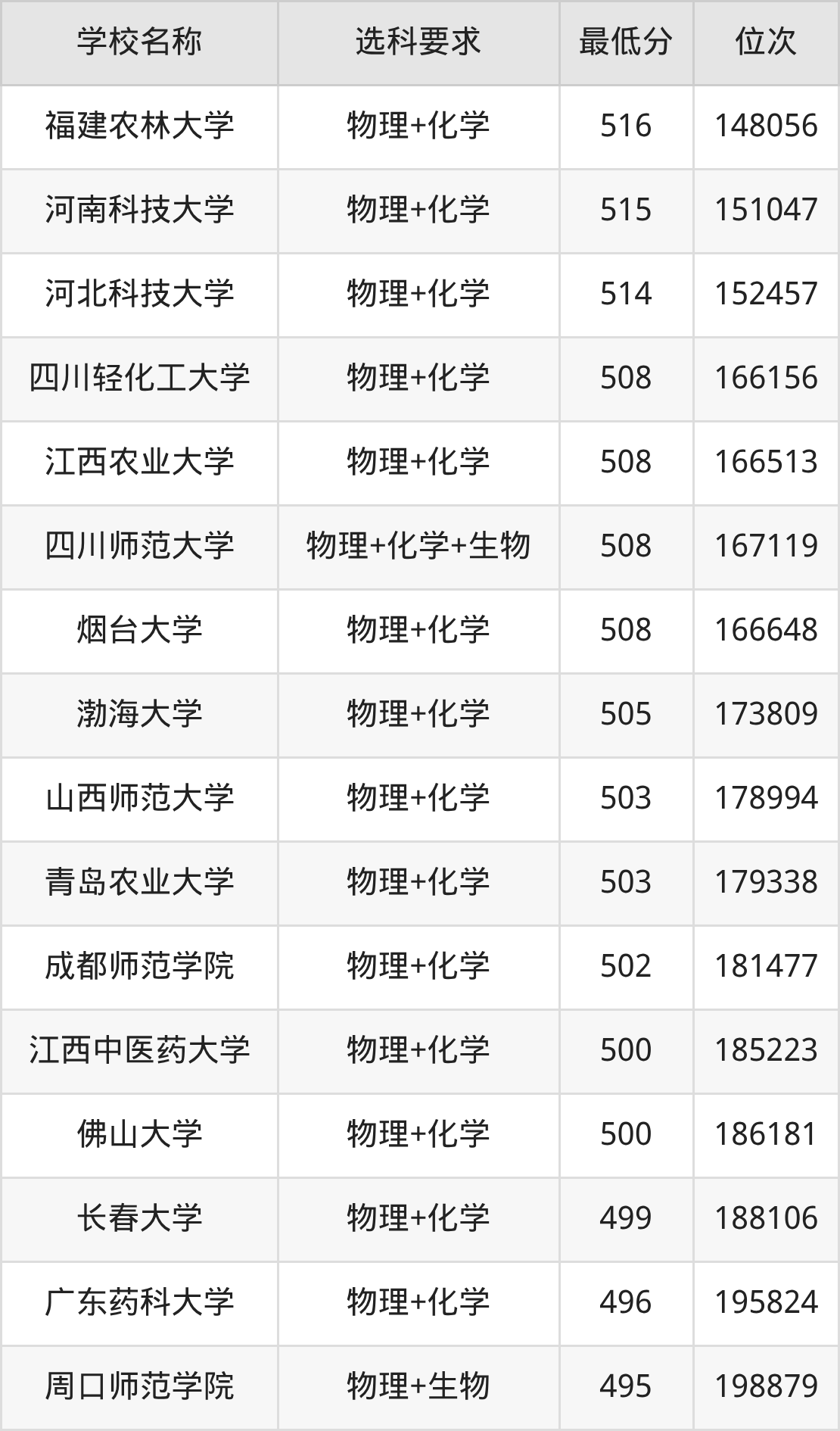 在山东招生的院校中,有71所要求考生必选“物理+化学”,如江南大学、南昌大学等;有2所要求考生必选“物理+化学+生物”,如四川师范大学、山西农业大学。