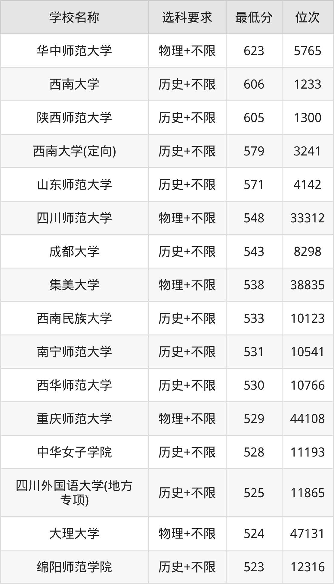 而十强院校中,陕西师范大学排全国第6名、东北师范大学排全国第7名、广西师范大学排全国第10名。