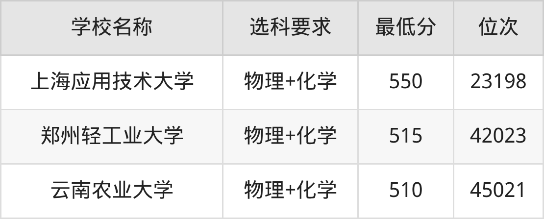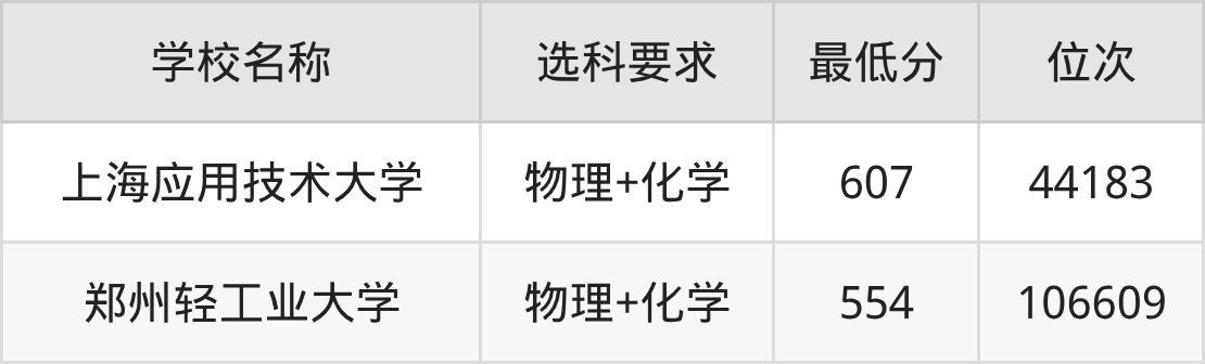 在贵州招生的院校中,有3所要求考生必选“物理+化学”,如上海应用技术大学、郑州轻工业大学等。