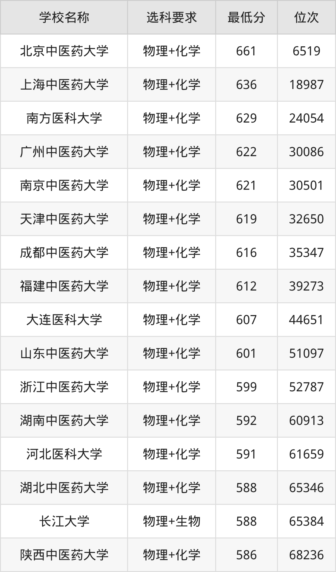 需要注意的是,中西医临床医学专业大学中有29所要求考生必选“物理+化学”,如北京中医药大学、上海中医药大学等;有4所要求考生必选“物理+生物”,如长江大学、江西中医药大学等,因此大家在报考前要提前了解清楚专业选科要求。