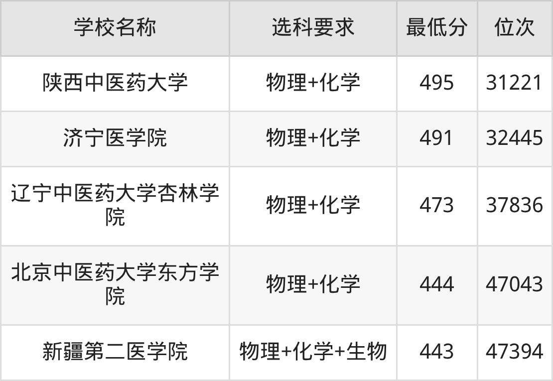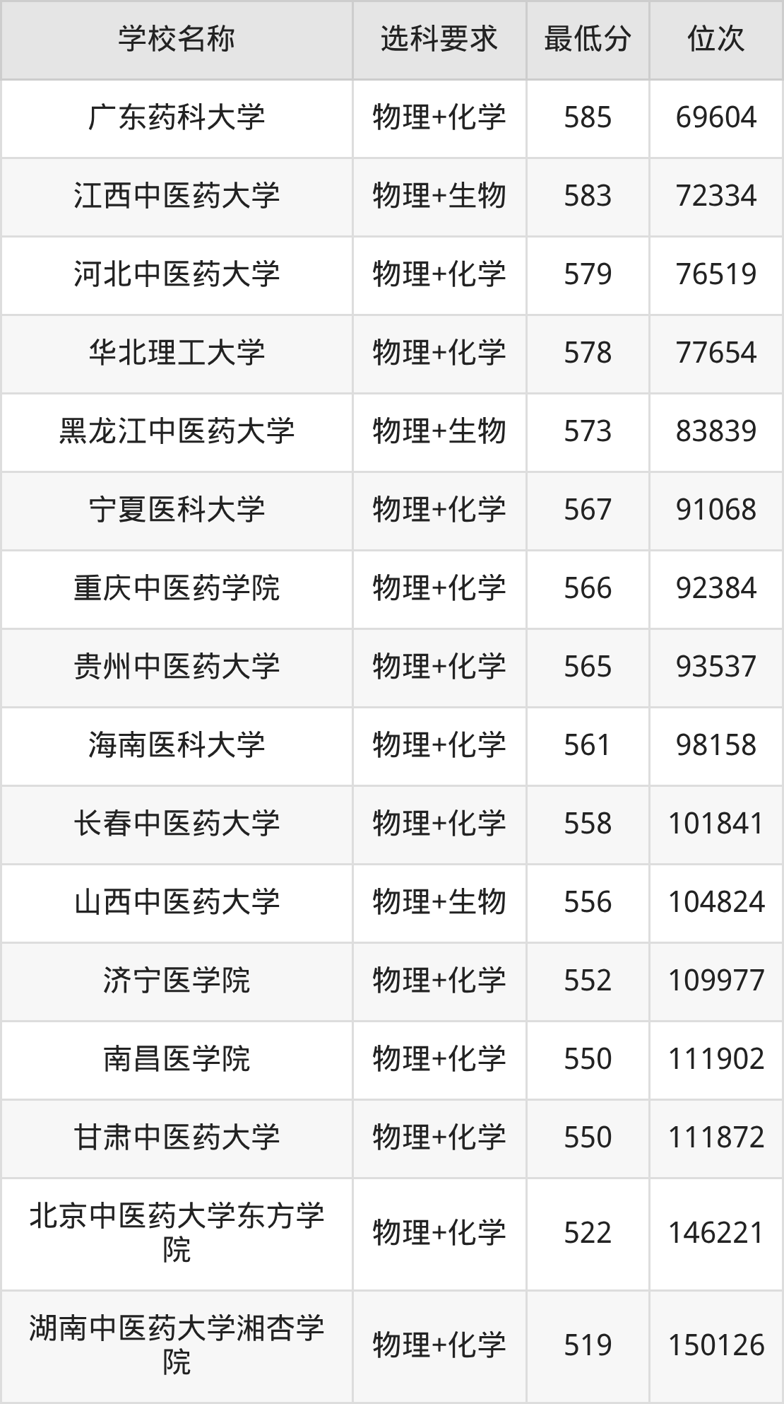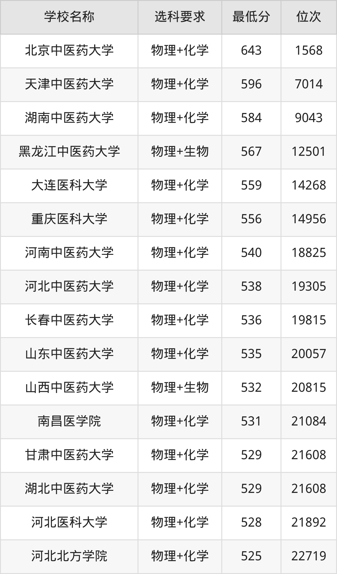 在内蒙古招生的院校中,有18所要求考生必选“物理+化学”,如北京中医药大学、天津中医药大学等;有2所要求考生必选“物理+生物”,如黑龙江中医药大学、山西中医药大学。