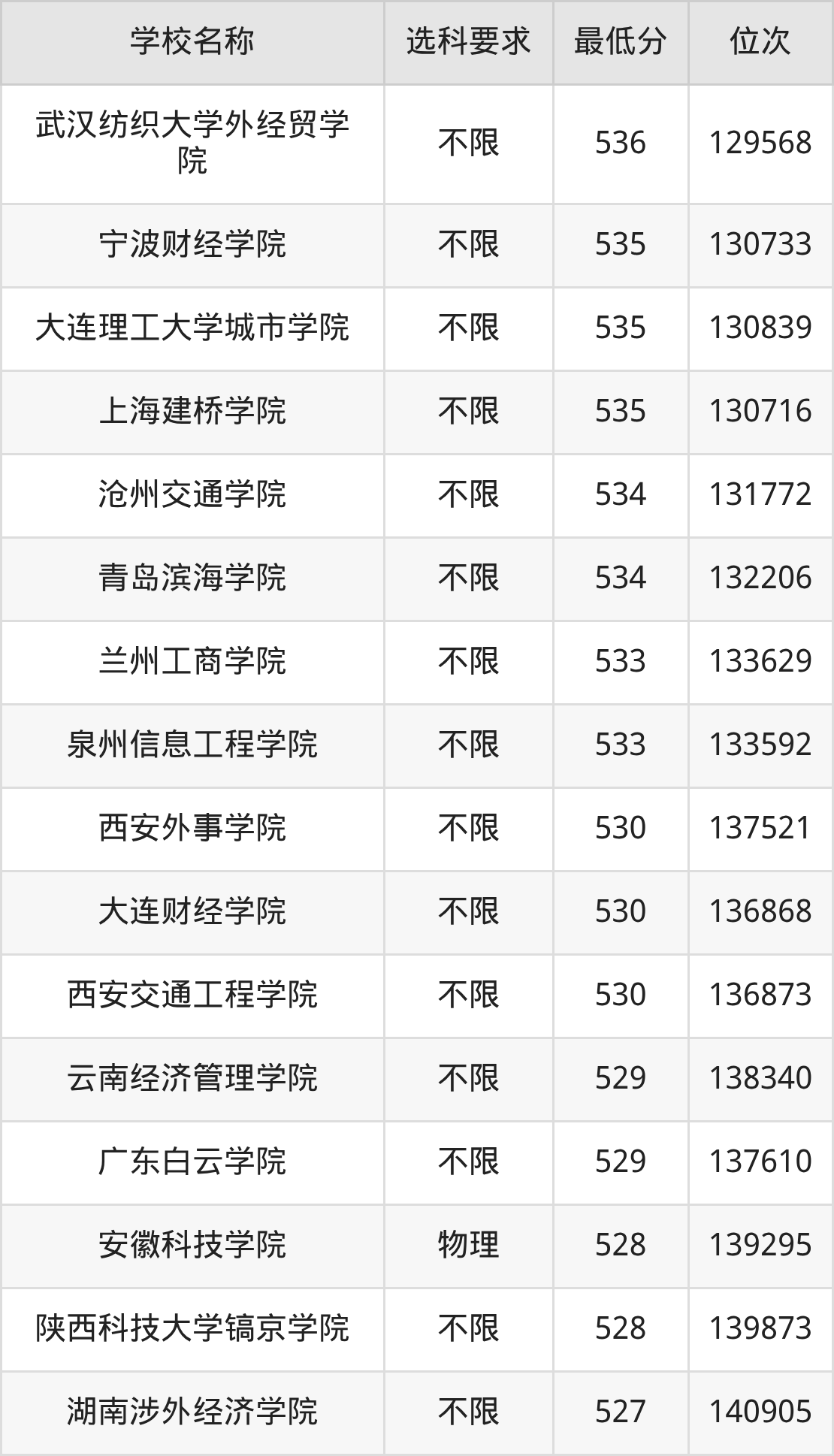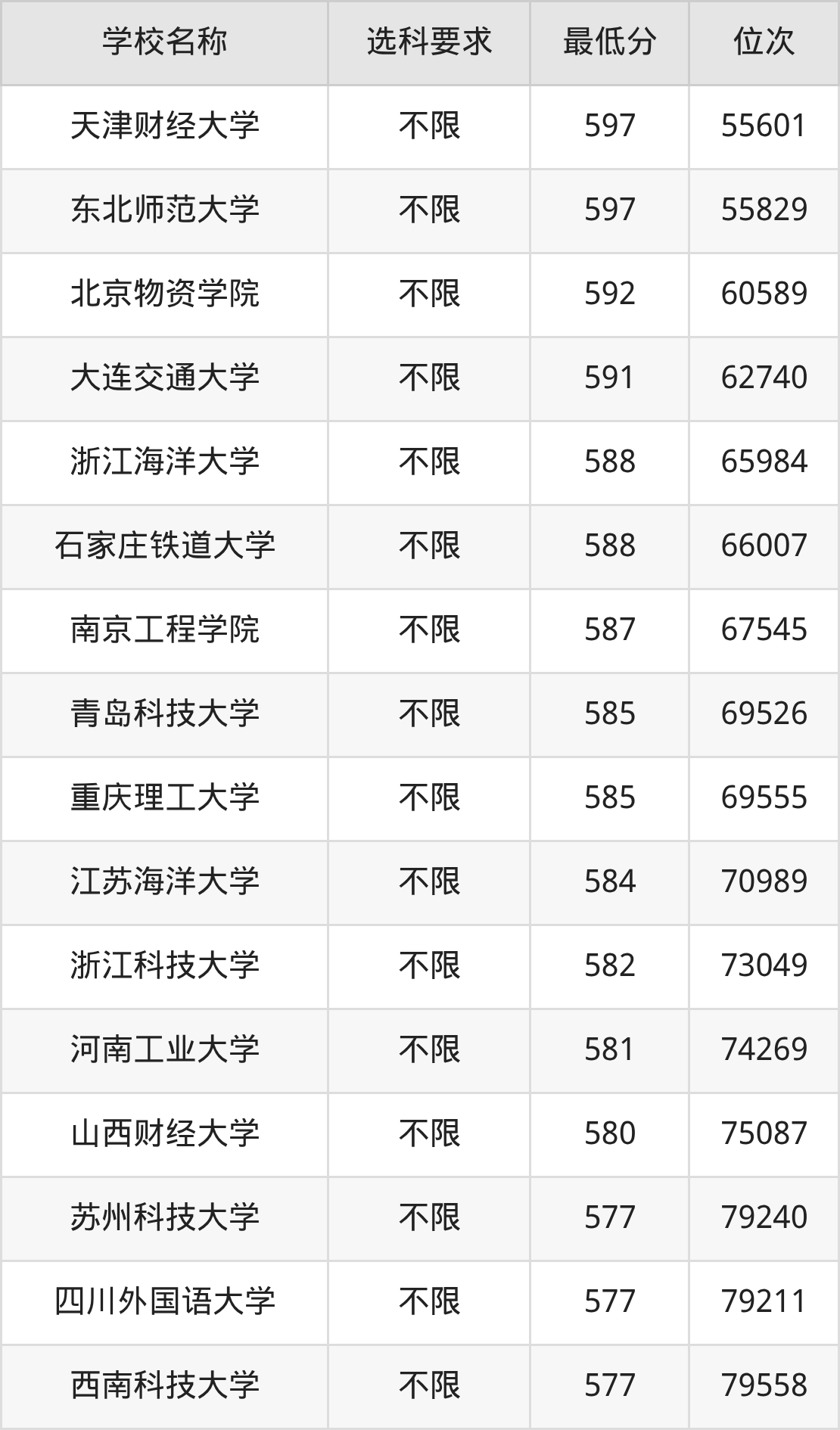 在内蒙古招生的院校中,有48所不限选科要求(物理组),如中国民航大学、石家庄铁道大学等;有34所不限选科要求(历史组),如宁波大学、安徽大学等。