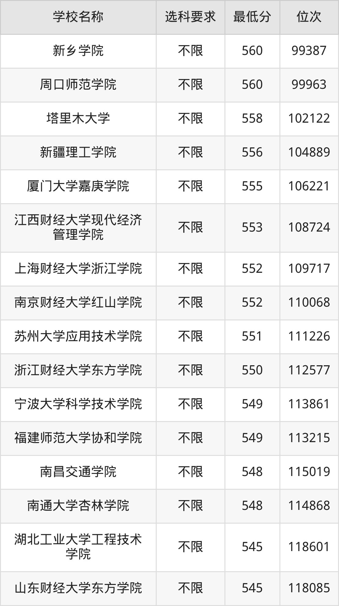 | 学校名称 | 等级 | 排名 |