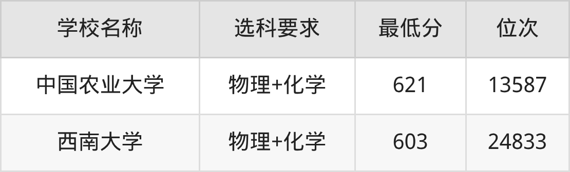在河北招生的院校中,有2所要求考生必选“物理+化学”,如中国农业大学、西南大学。