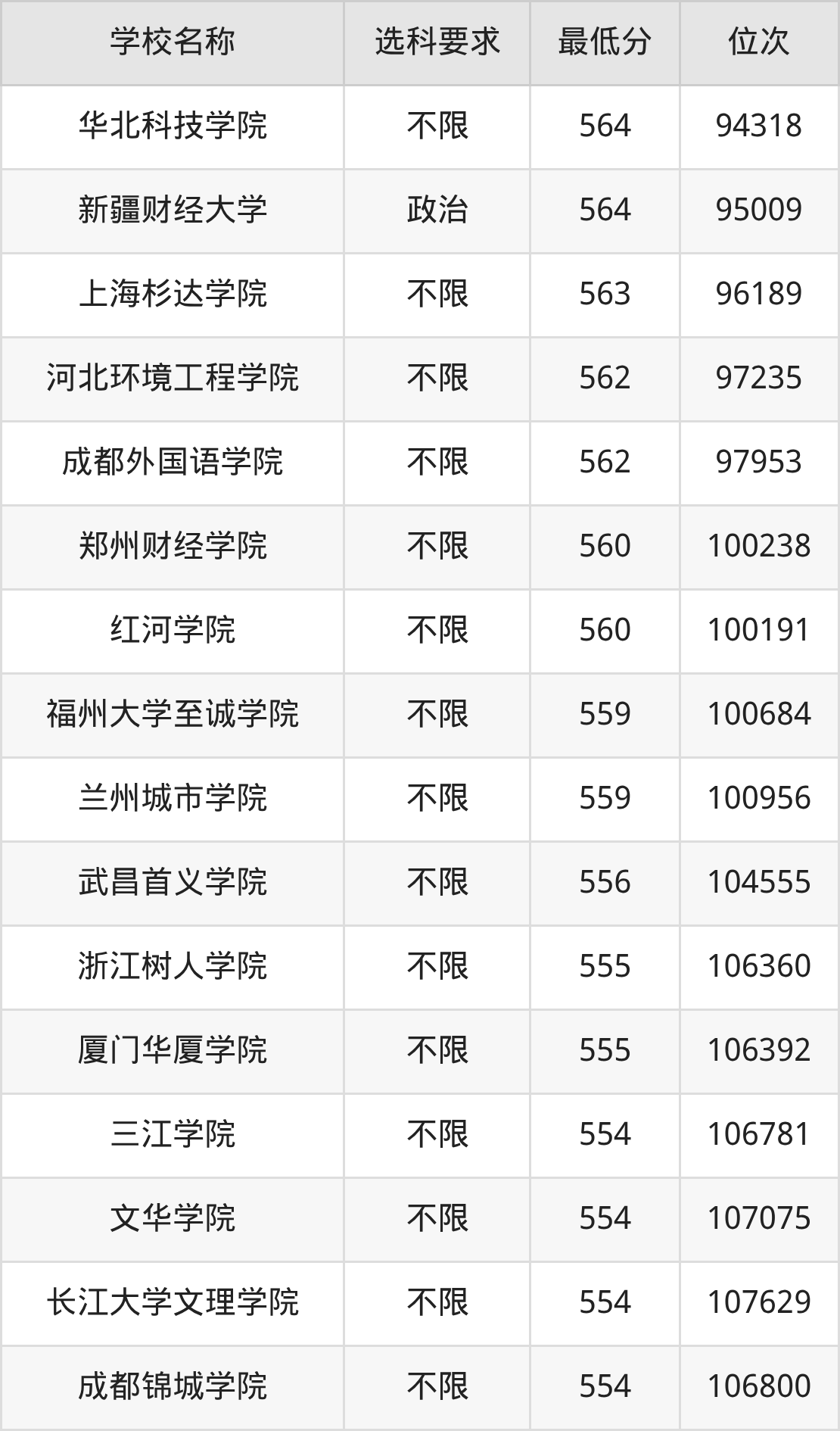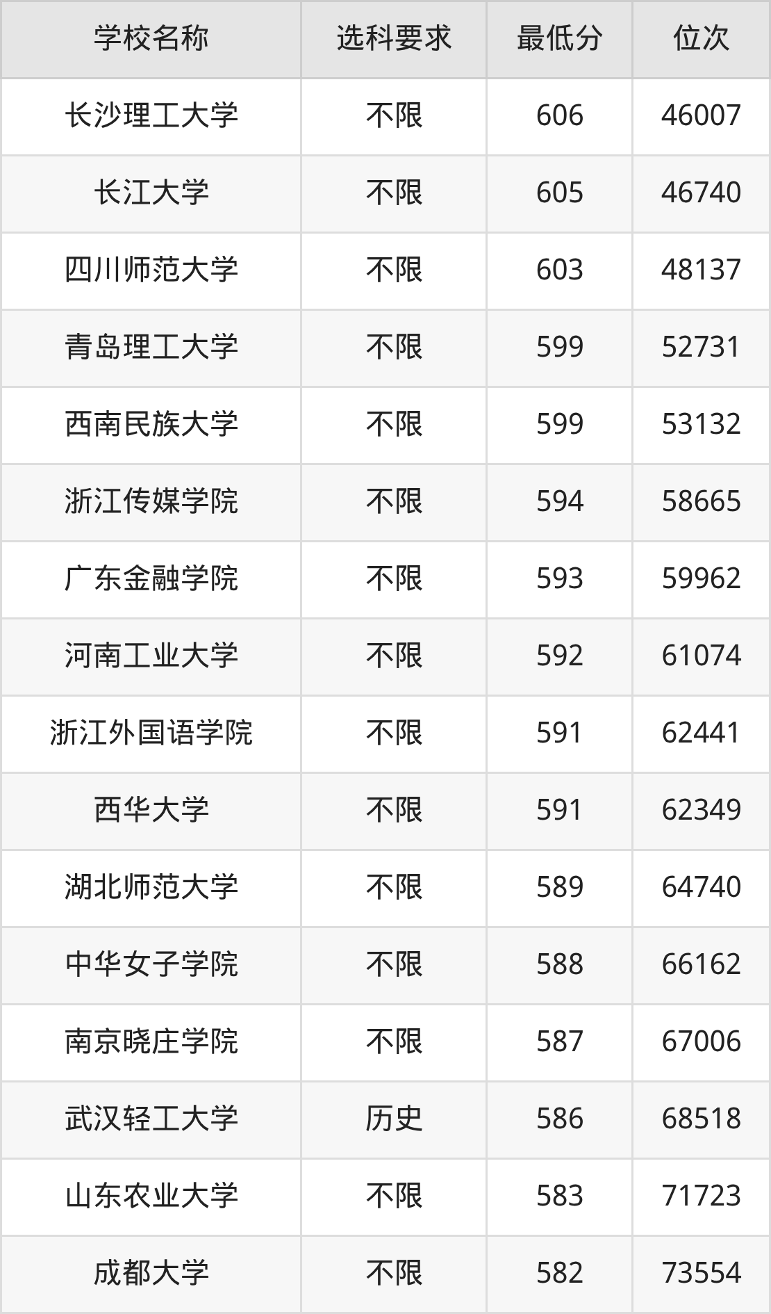 | 学校名称 | 等级 | 排名 |