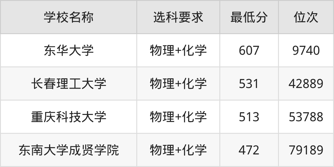 需要注意的是,功能材料专业大学中有4所要求考生必选“物理+化学”,如东华大学、长春理工大学等,因此大家在报考前要提前了解清楚专业选科要求。