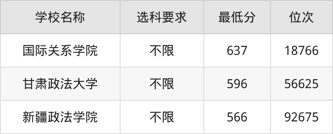 需要注意的是,国家安全学专业大学中有3所不限选科要求,如国际关系学院、甘肃政法大学等,因此大家在报考前要提前了解清楚专业选科要求。