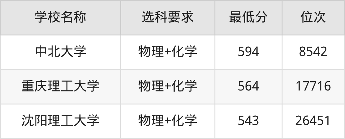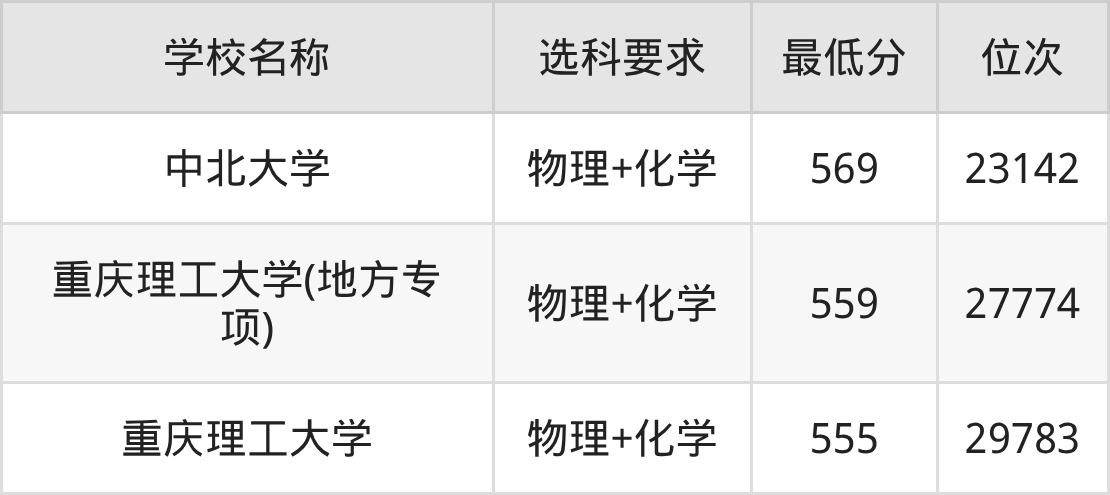 在贵州招生的院校中,有3所要求考生必选“物理+化学”,如中北大学、重庆理工大学等。