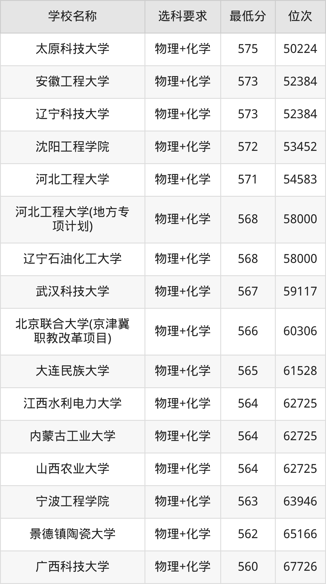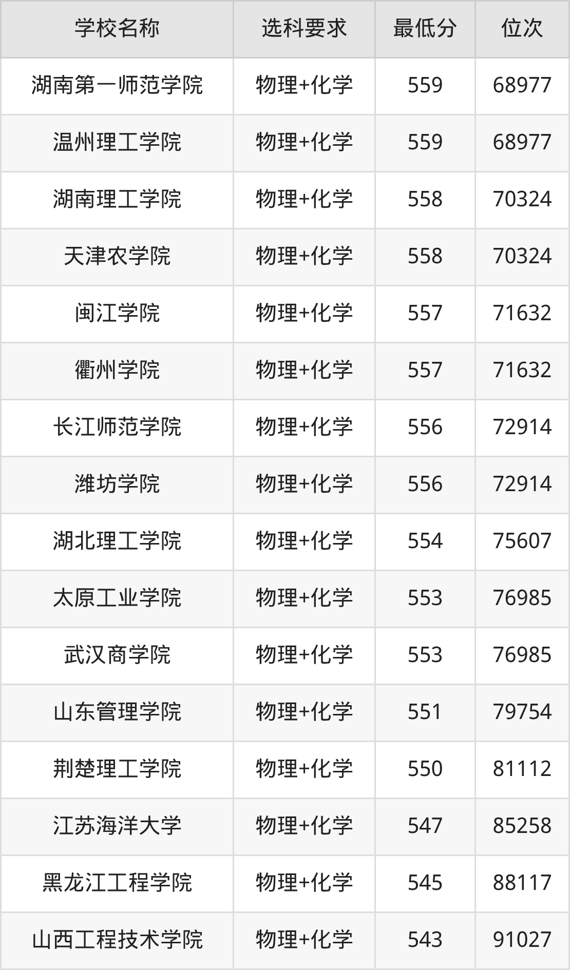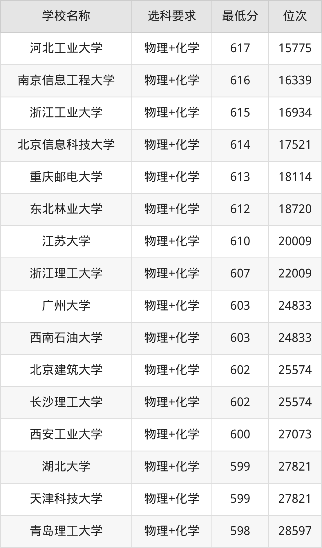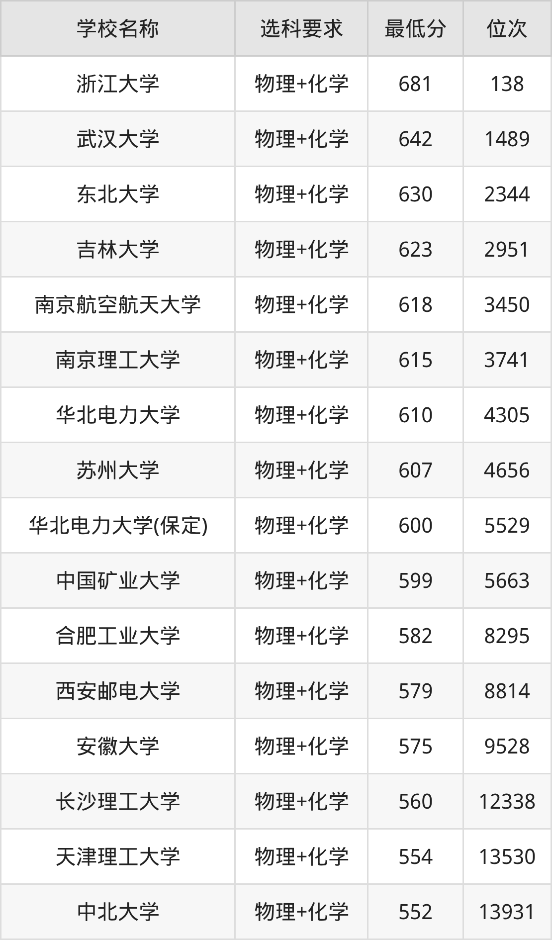 在河北招生的院校中,有163所要求考生必选“物理+化学”,如武汉大学、东北大学等。