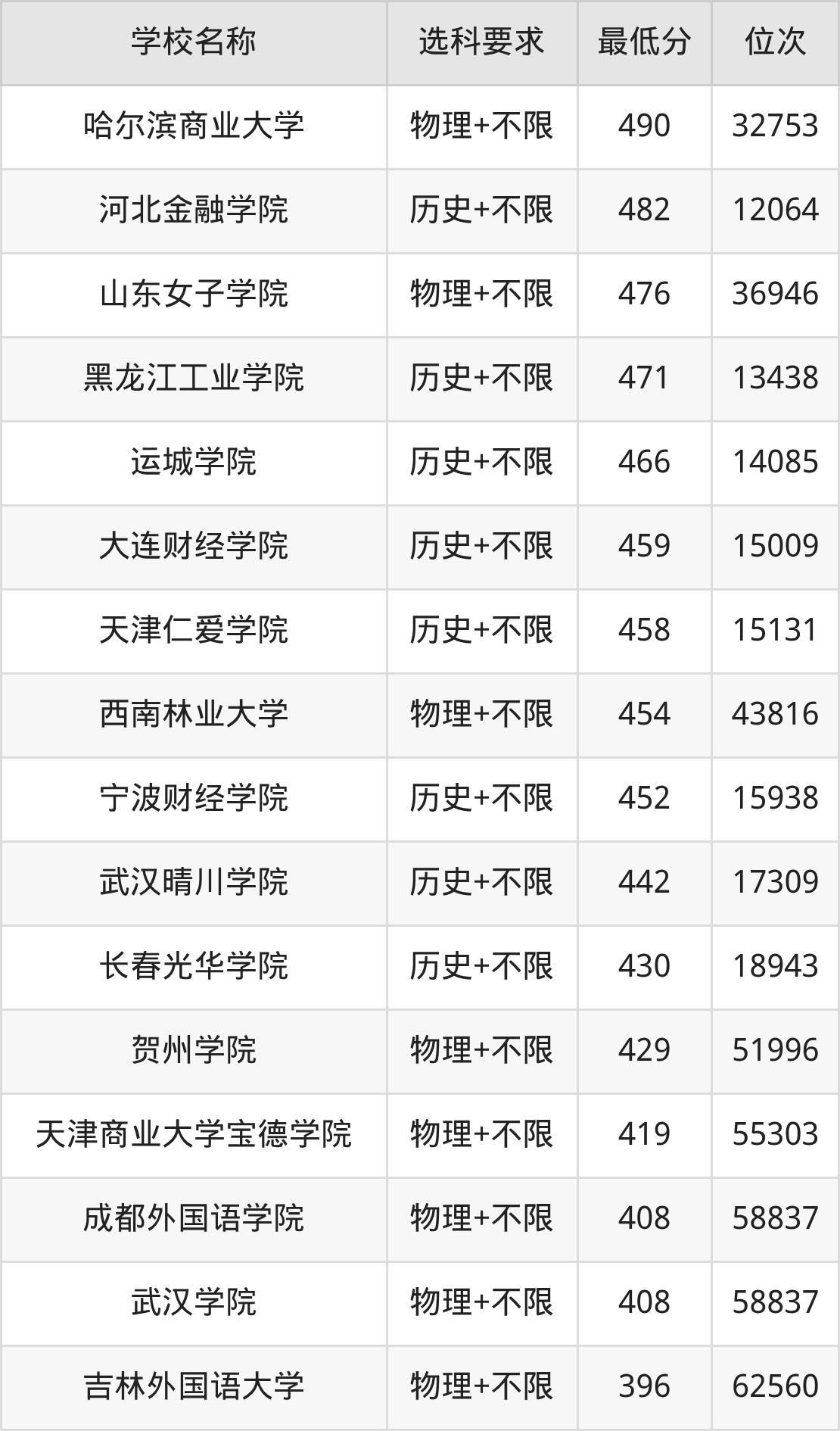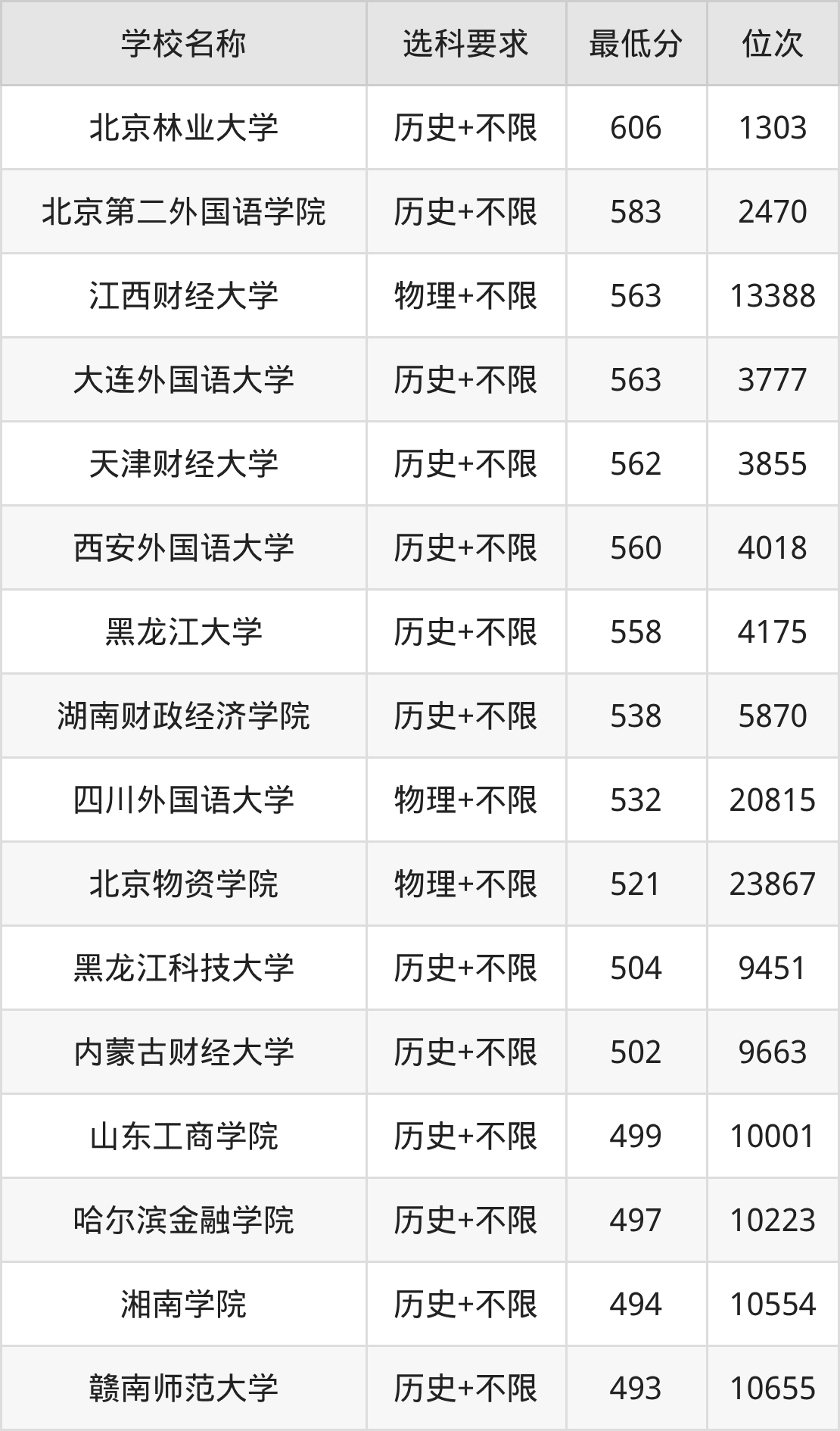 需要注意的是,商务英语专业大学中有21所不限选科要求(历史组),如北京林业大学、北京第二外国语学院等;有15所不限选科要求(物理组),如江西财经大学、四川外国语大学等,因此大家在报考前要提前了解清楚专业选科要求。