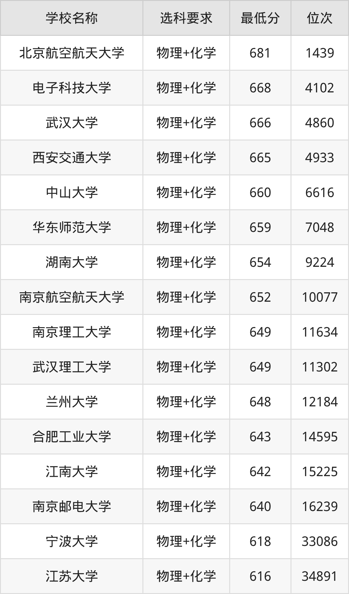 在内蒙古招生的院校中,有20所要求考生必选“物理+化学”,如北京航空航天大学、武汉大学等。