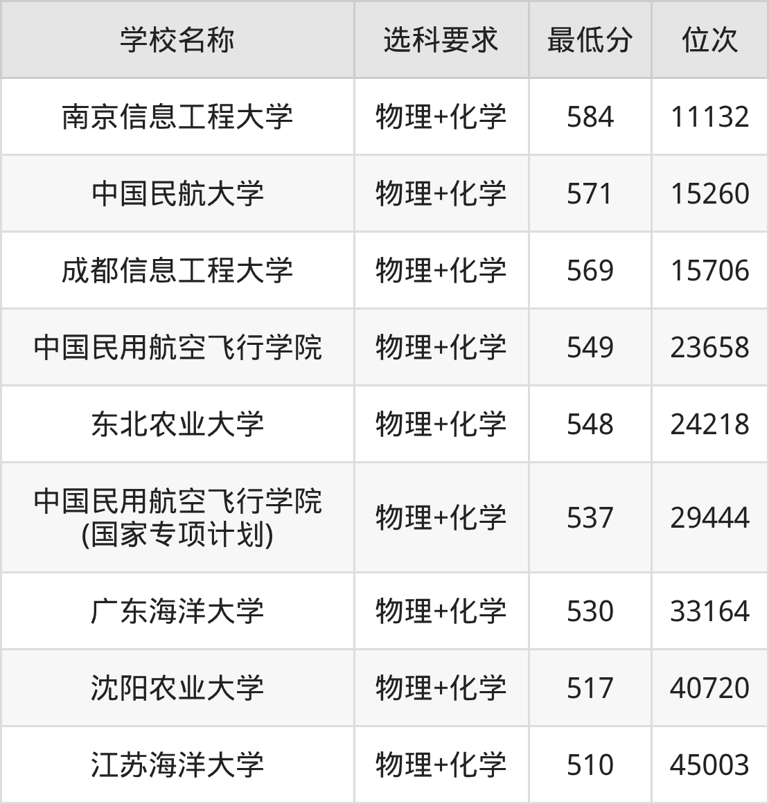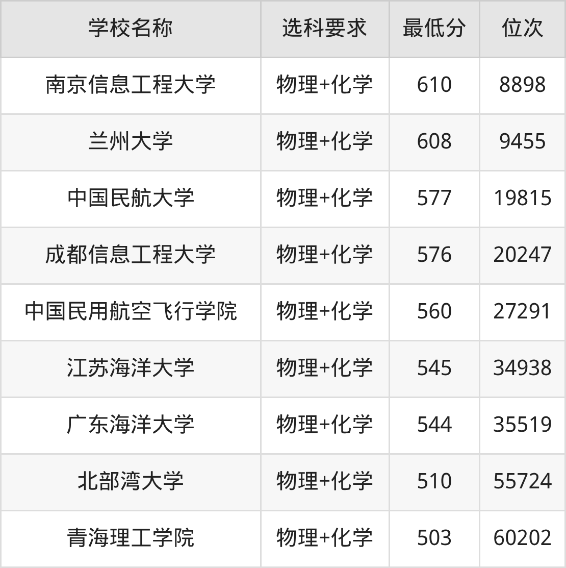 在重庆招生的院校中,有9所要求考生必选“物理+化学”,如南京信息工程大学、兰州大学等。