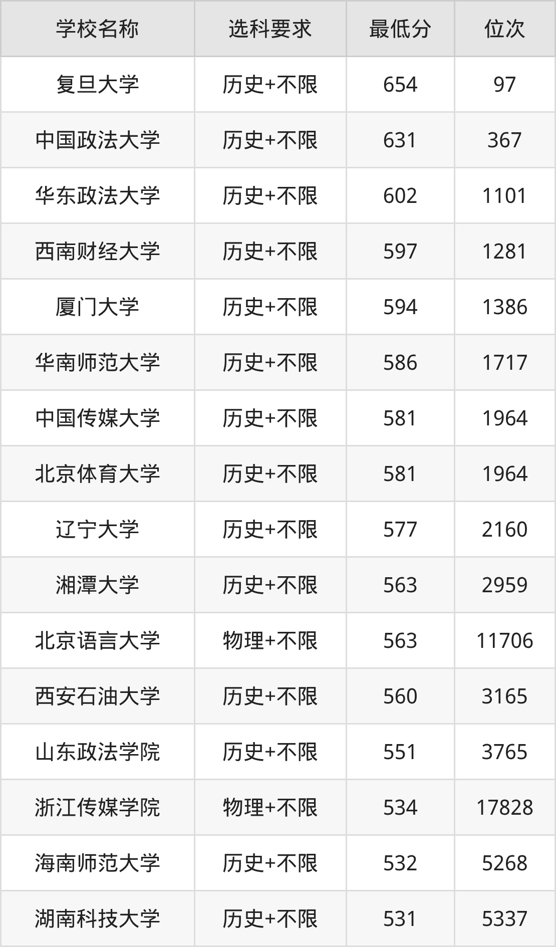 需要注意的是,新闻学专业大学中有32所不限选科要求(历史组),如复旦大学、中国政法大学等;有15所不限选科要求(物理组),如北京语言大学、浙江传媒学院等,因此大家在报考前要提前了解清楚专业选科要求。