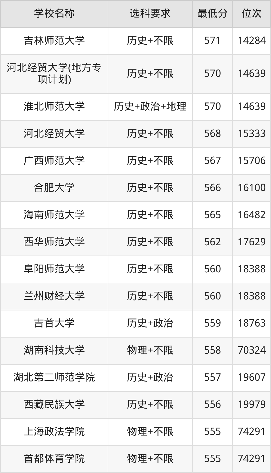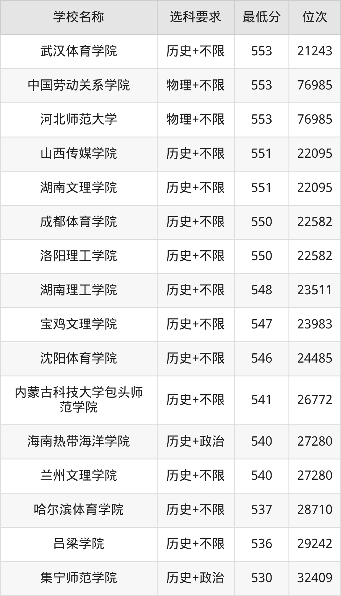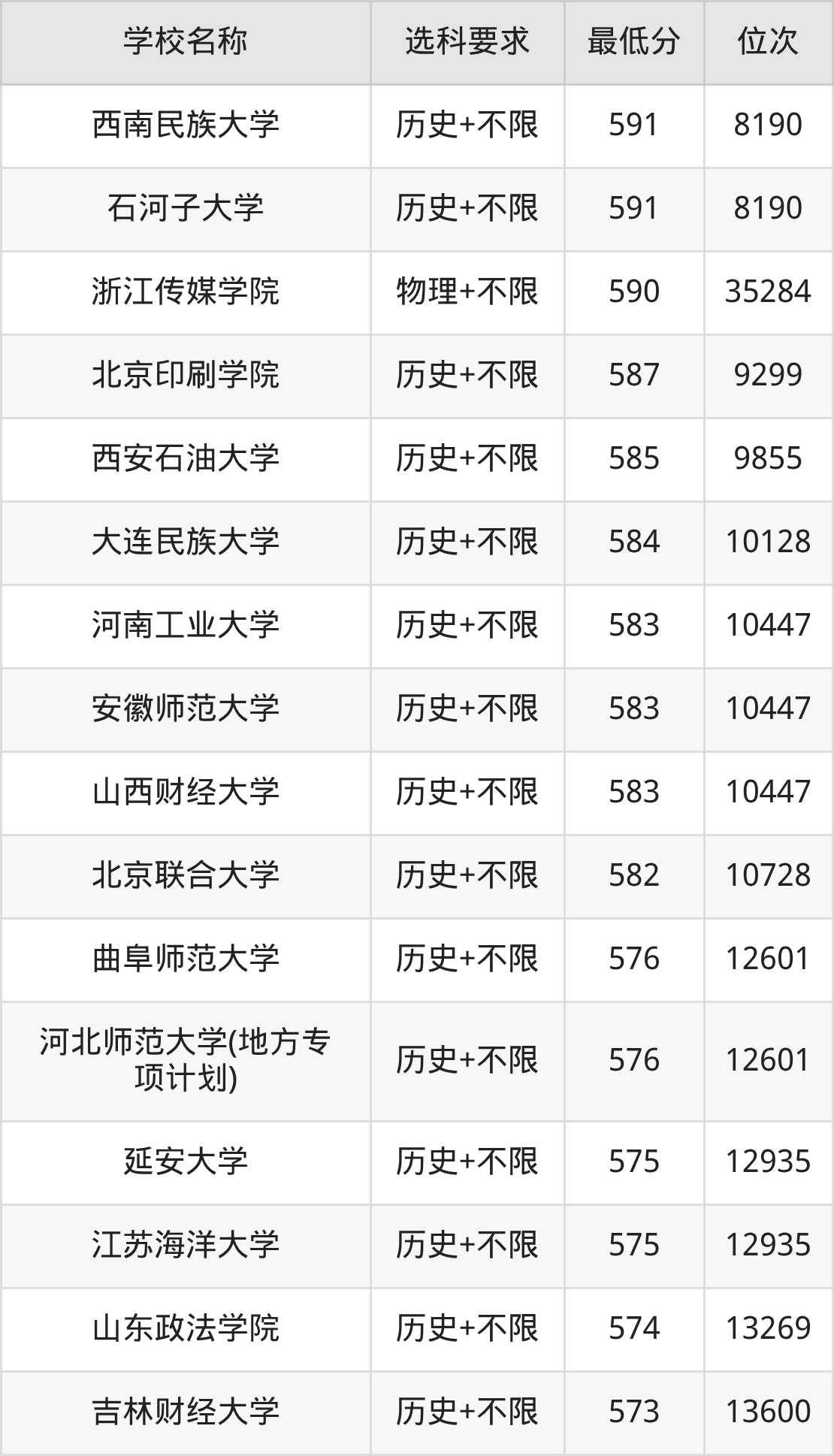 在河北招生的院校中,有66所不限选科要求(历史组),如中国政法大学、北京体育大学等;有22所不限选科要求(物理组),如中国传媒大学、西南大学等。