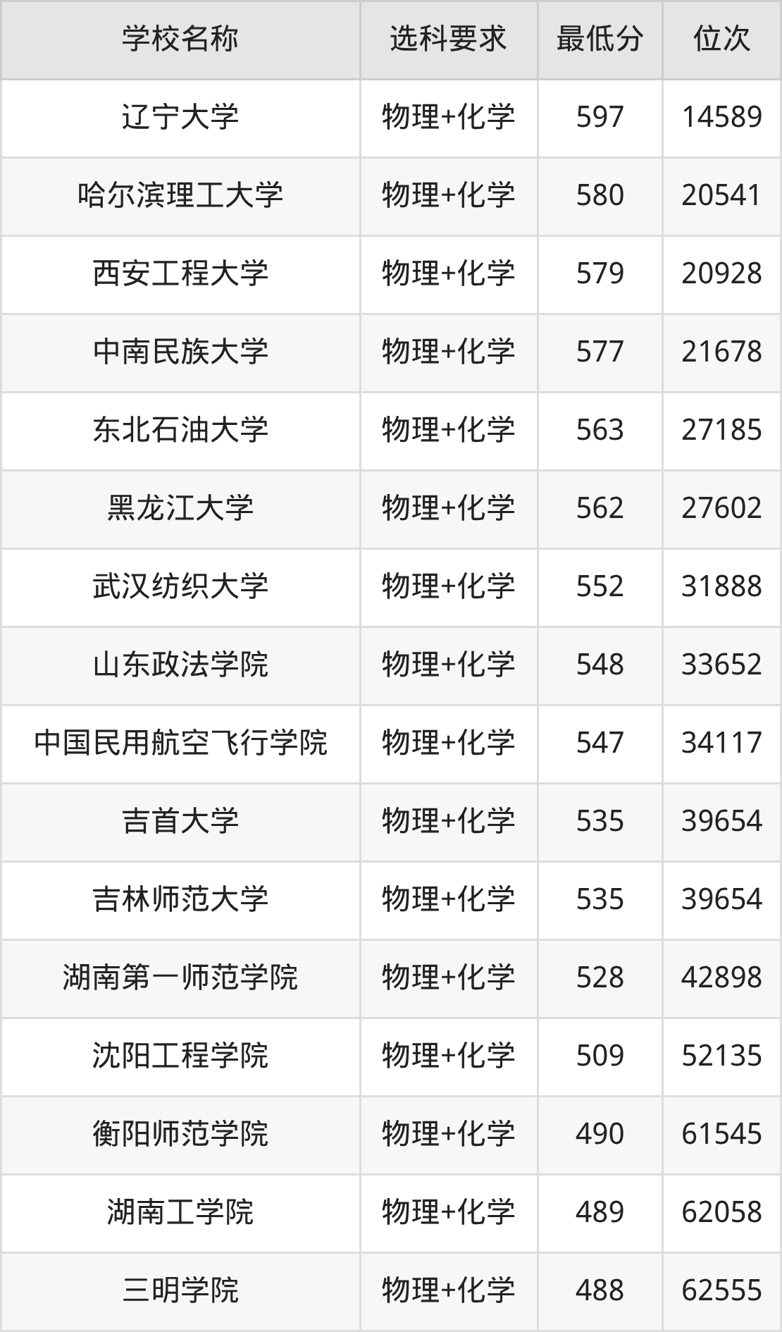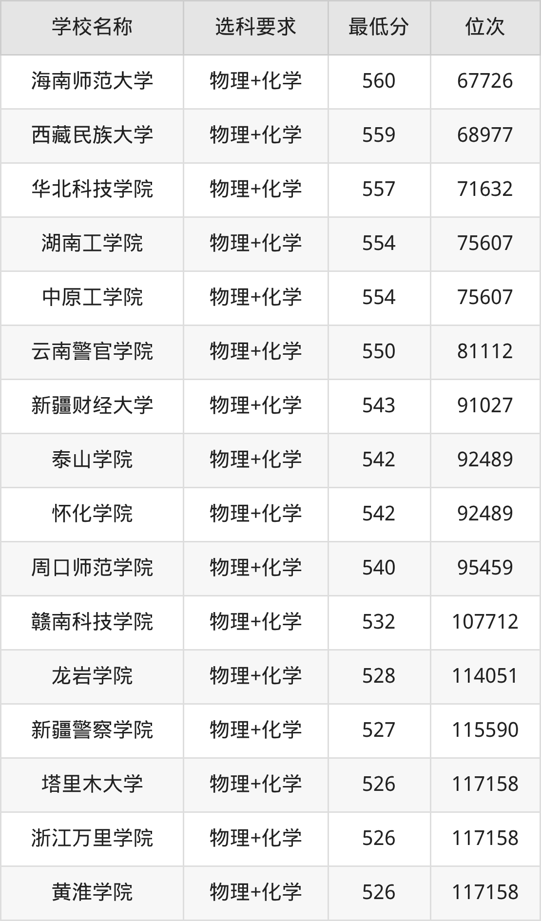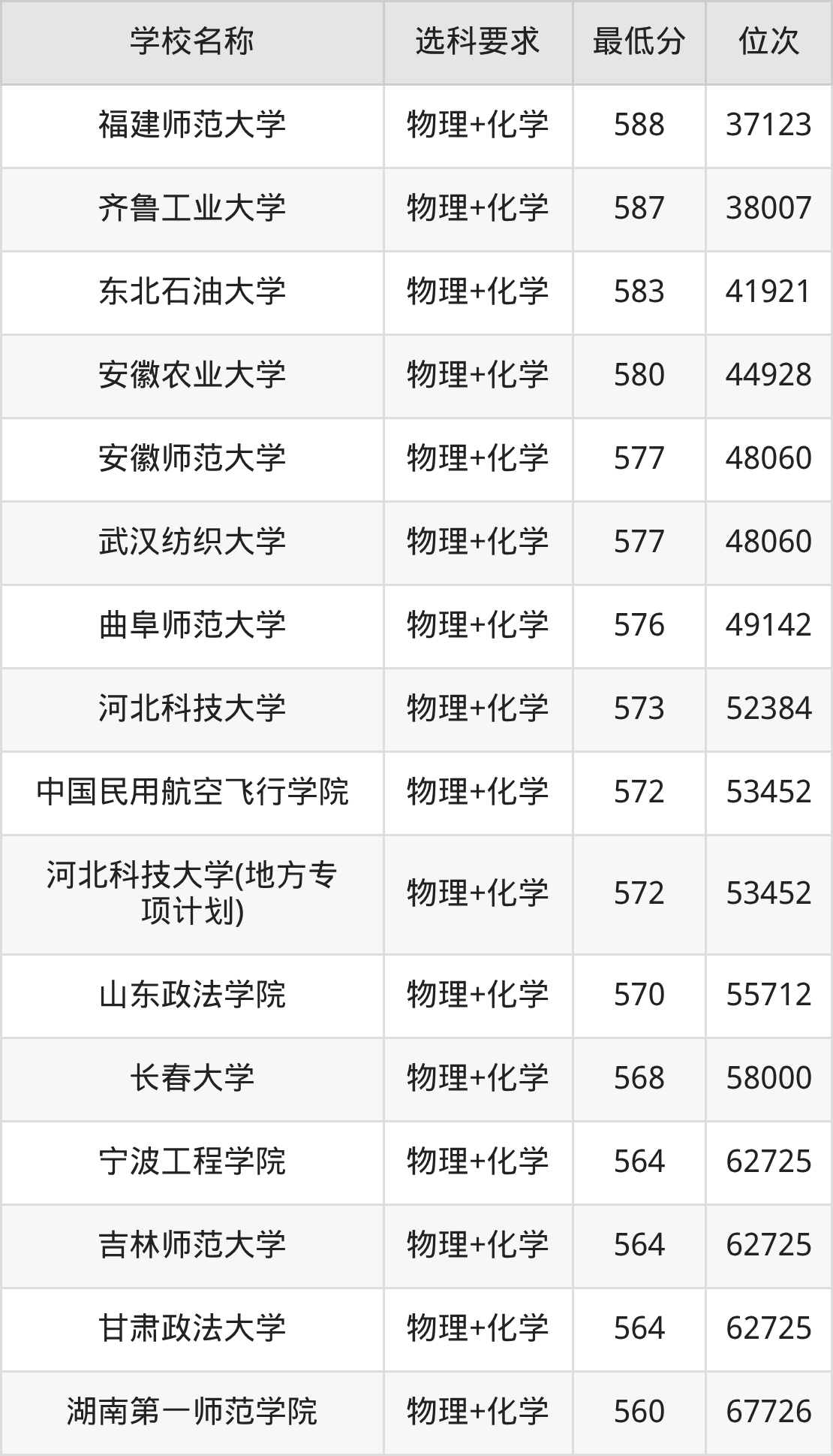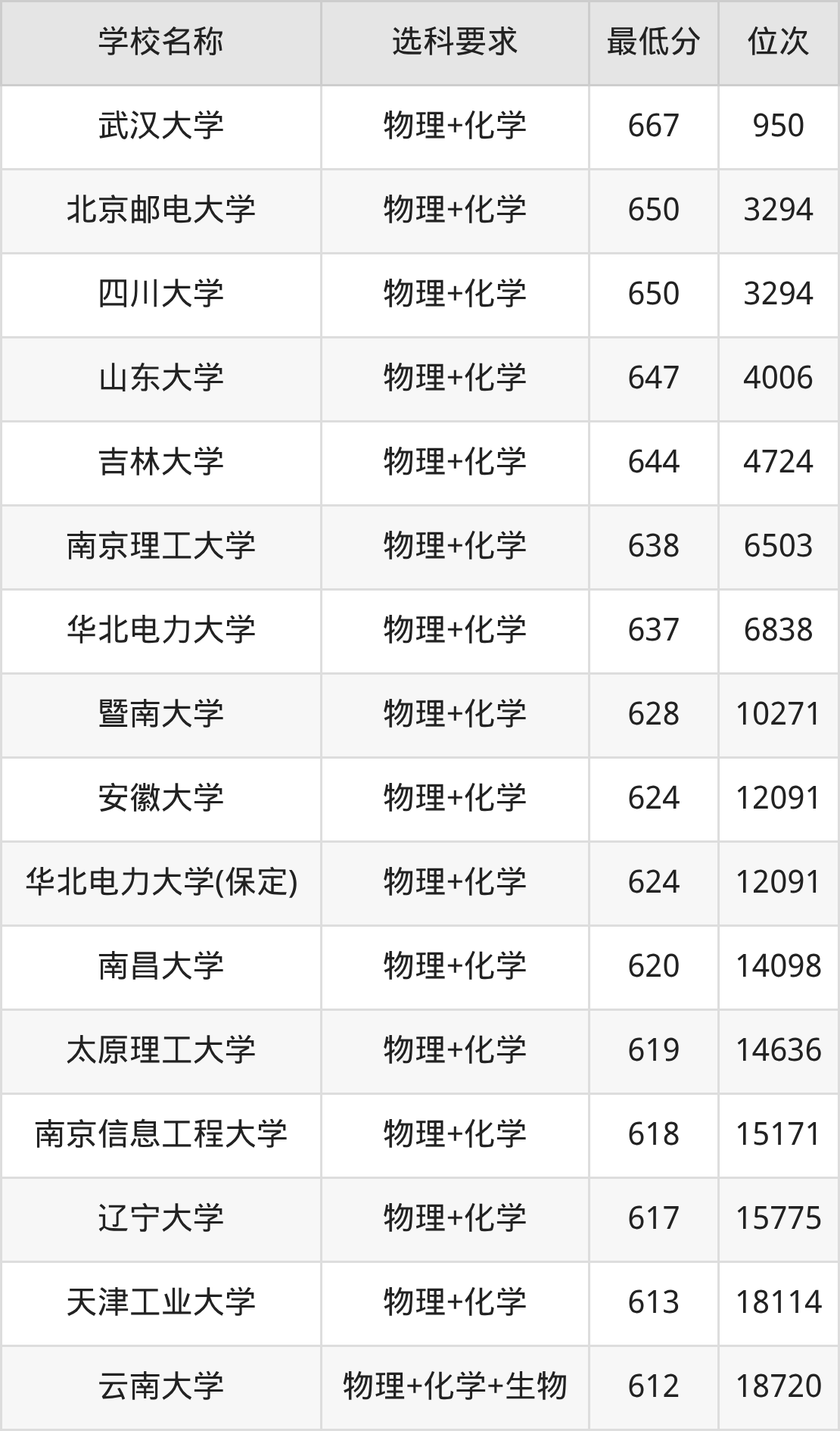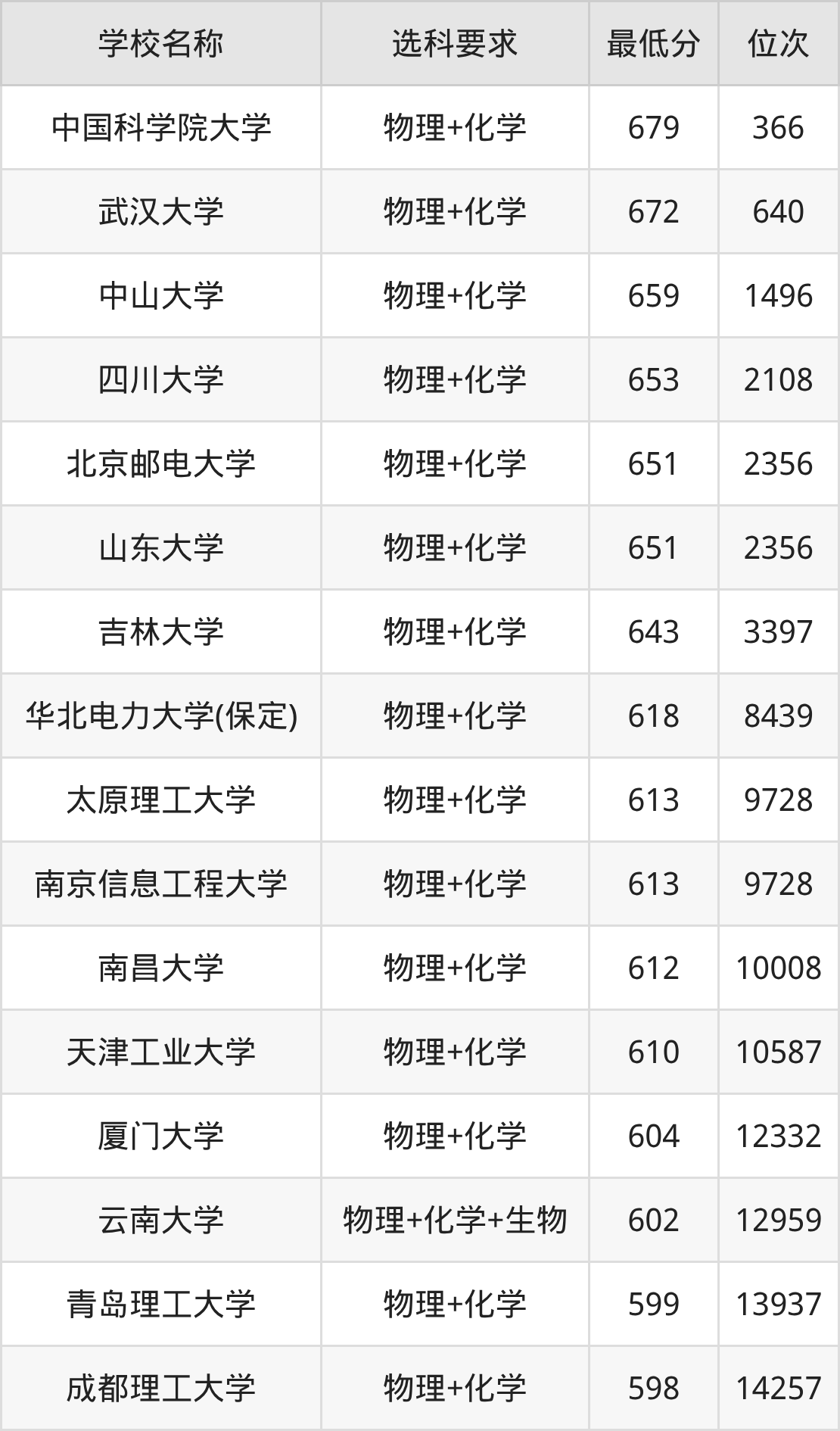 在河北招生的院校中,有69所要求考生必选“物理+化学”,如武汉大学、北京邮电大学等;有1所要求考生必选“物理+化学+生物”,如云南大学。