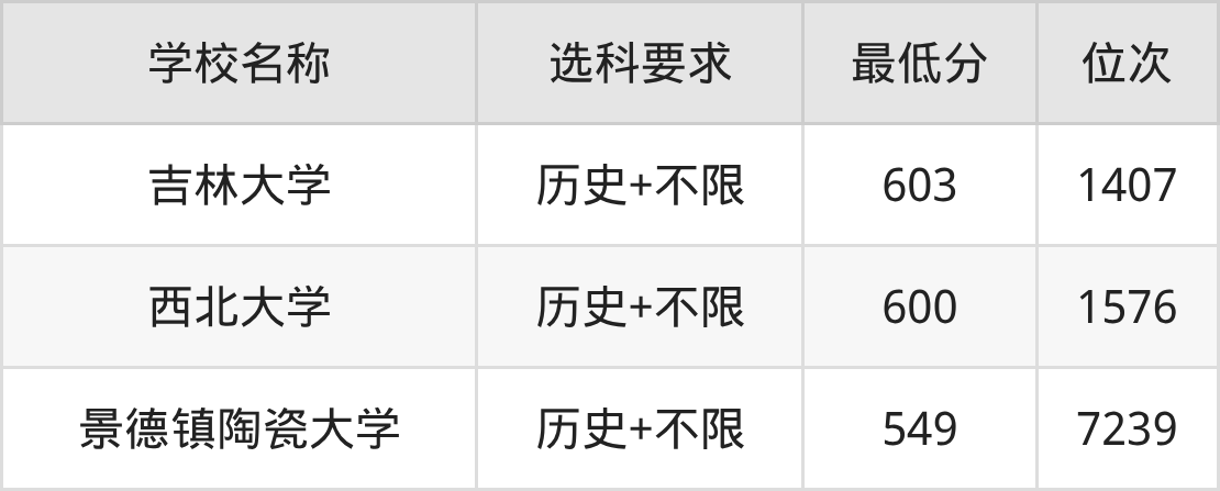 重庆数据显示,2025年收分最低、最容易考的考古学院校是景德镇陶瓷大学(549分)、西北大学(600分),而收分最高、最难考的考古学院校是吉林大学(603分)。