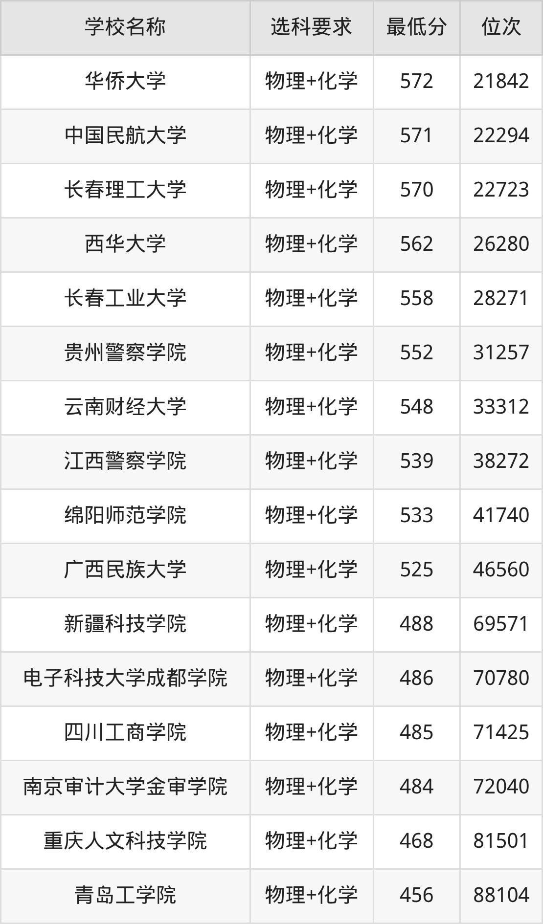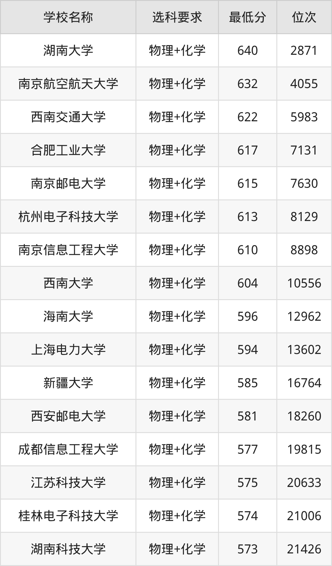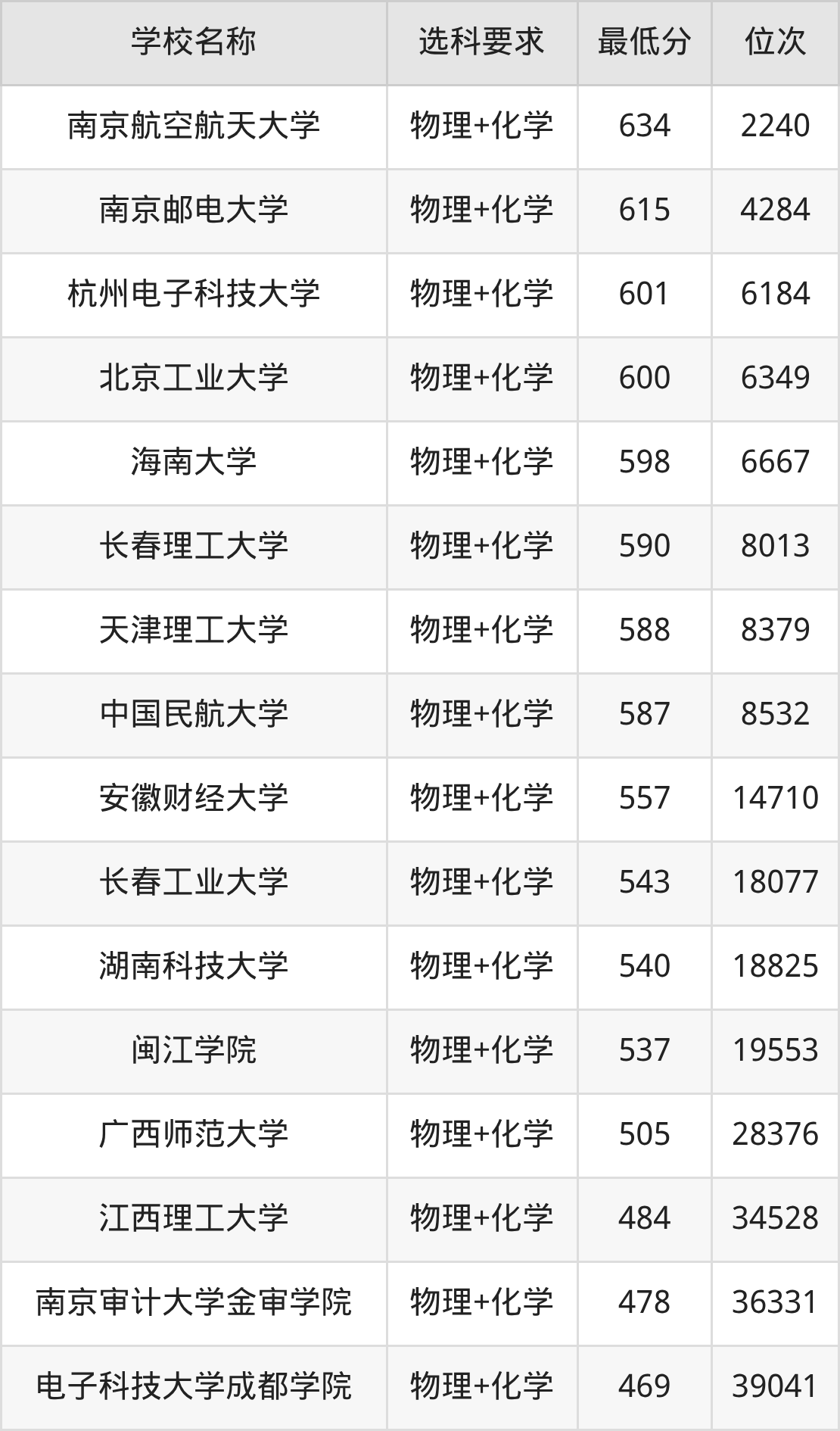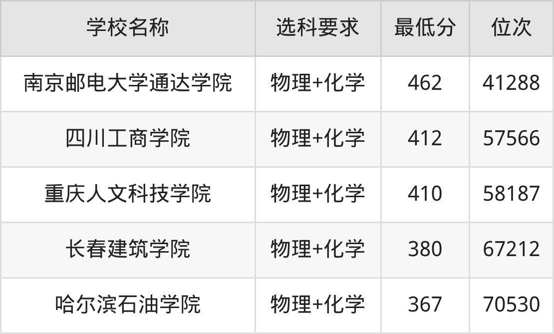 在内蒙古招生的院校中,有21所要求考生必选“物理+化学”,如南京航空航天大学、南京邮电大学等。