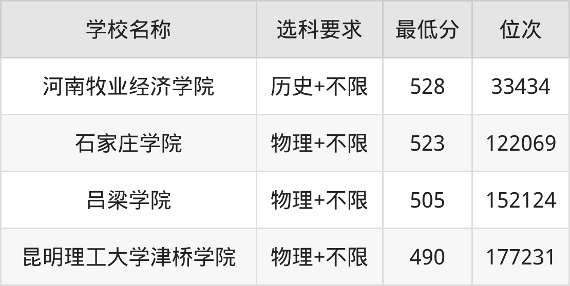 需要注意的是,物业管理专业大学中有3所不限选科要求(物理组),如石家庄学院、吕梁学院等;有1所不限选科要求(历史组),如河南牧业经济学院,因此大家在报考前要提前了解清楚专业选科要求。