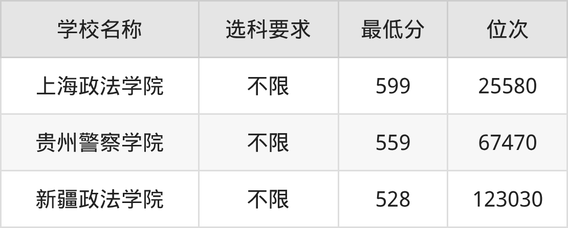 需要注意的是,监狱学专业大学中有3所不限选科要求,如上海政法学院、贵州警察学院等,因此大家在报考前要提前了解清楚专业选科要求。