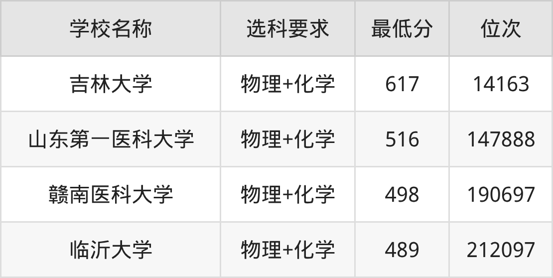 需要注意的是,生物医学科学专业大学中有4所要求考生必选“物理+化学”,如吉林大学、山东第一医科大学等,因此大家在报考前要提前了解清楚专业选科要求。