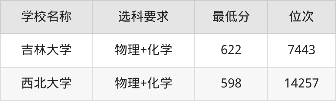 在辽宁招生的院校中,有2所要求考生必选“物理+化学”,如吉林大学、西北大学。