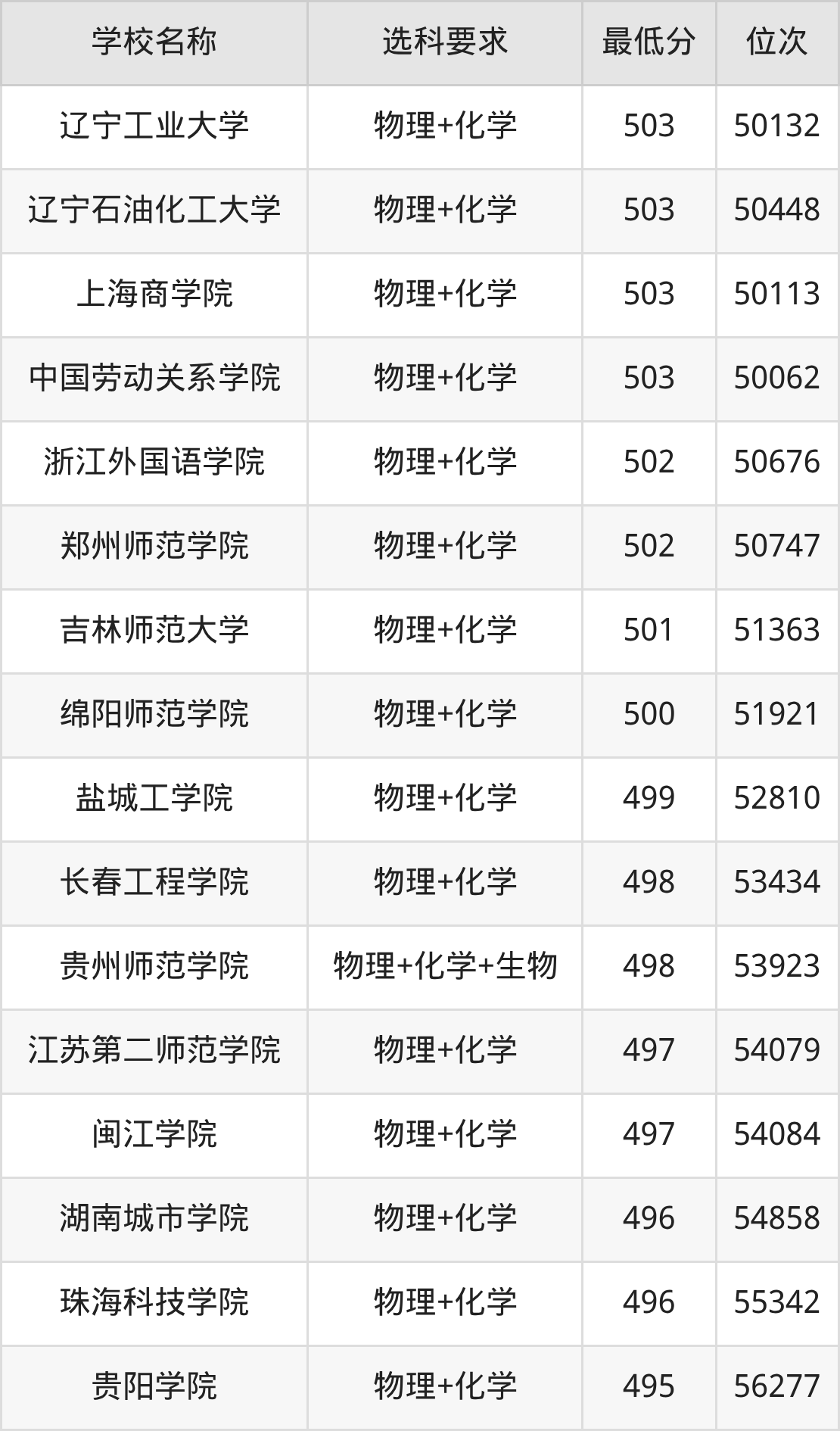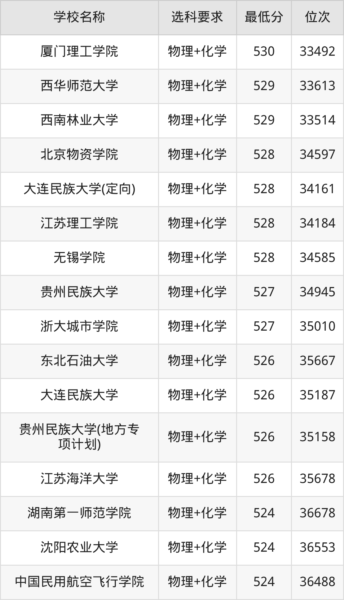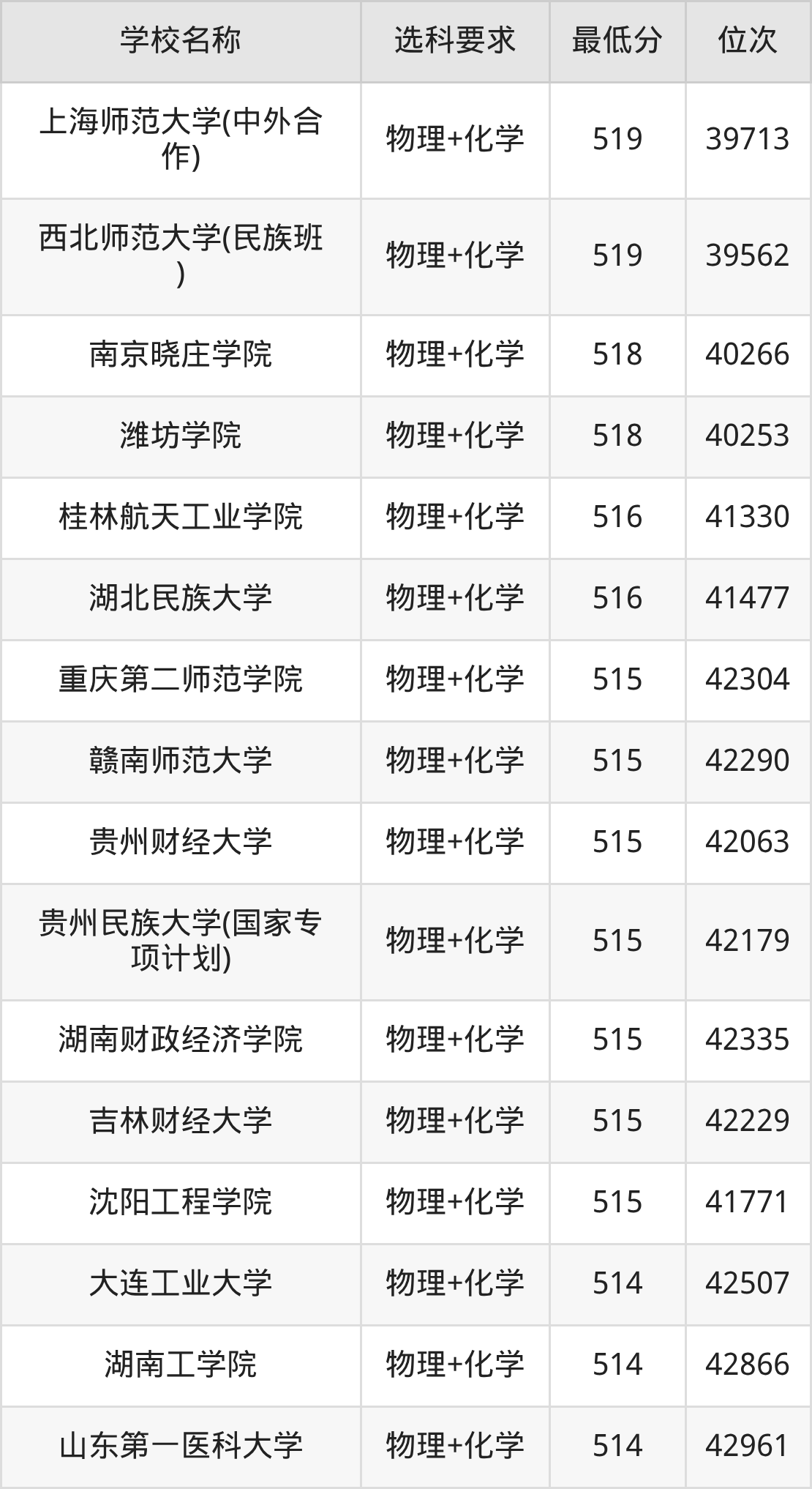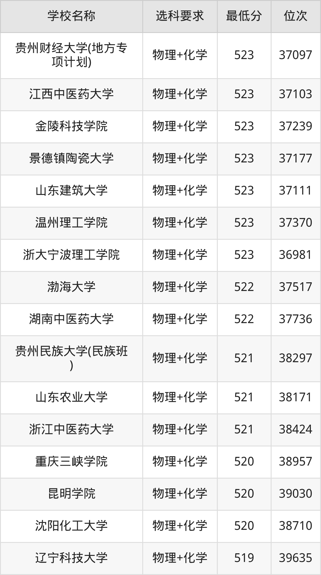在贵州招生的院校中,有478所要求考生必选“物理+化学”,如南京大学、国防科技大学等;有2所要求考生必选“物理+化学+生物”,如云南大学、贵州师范学院。