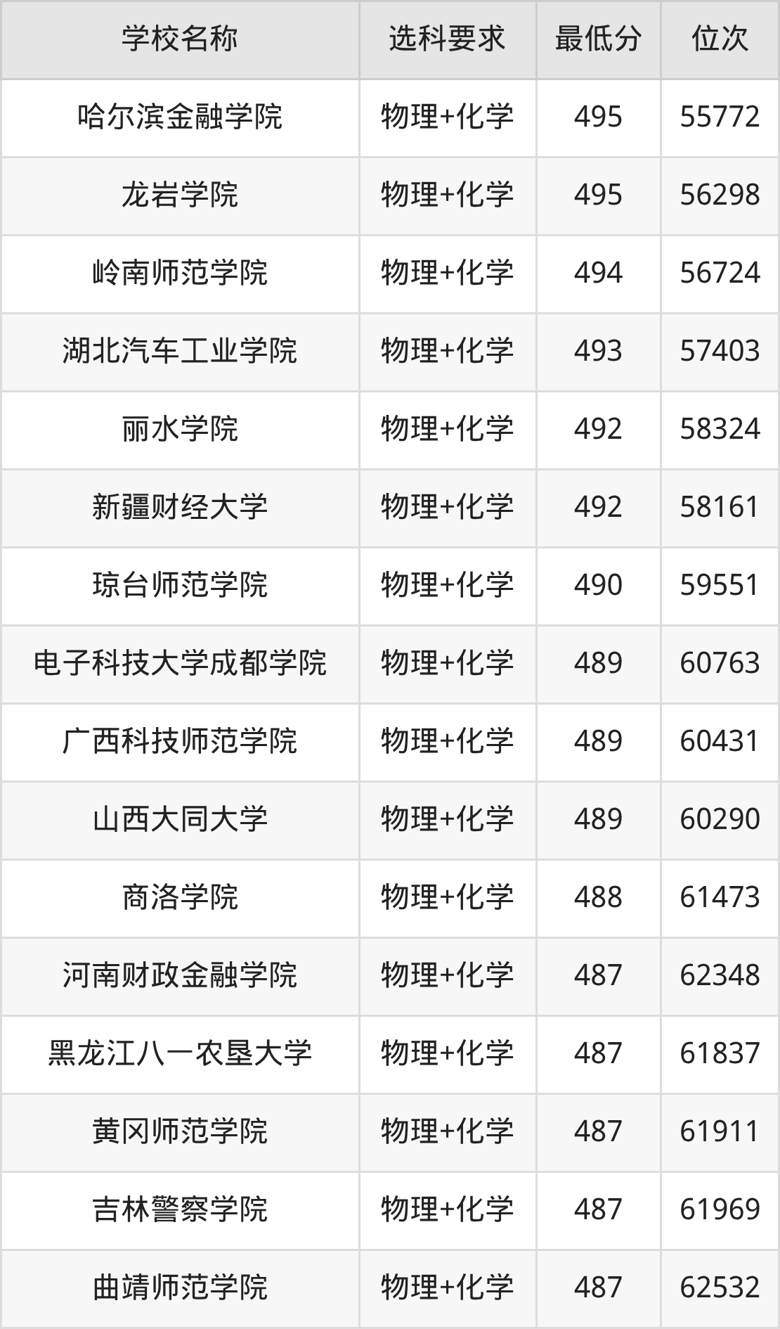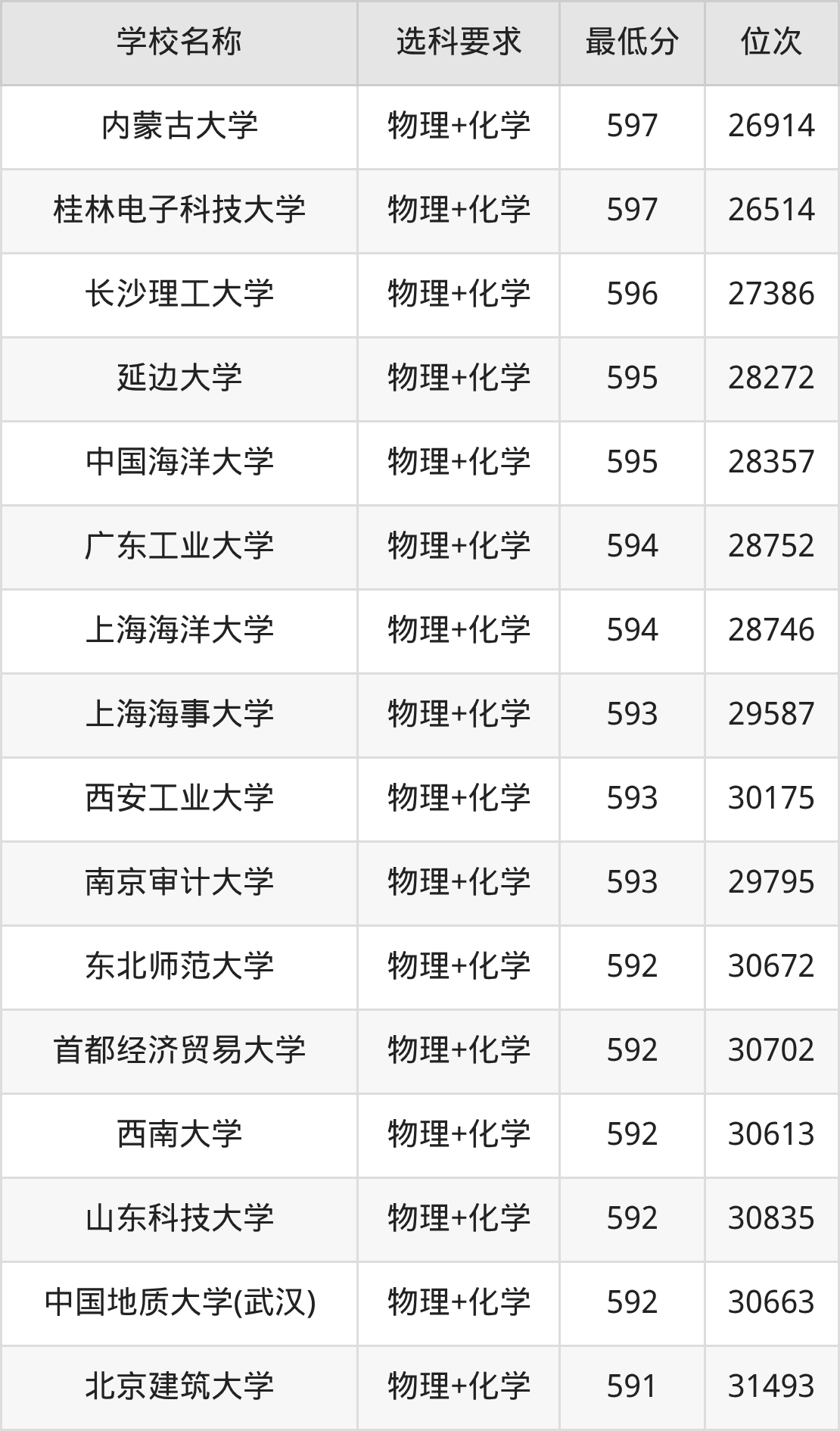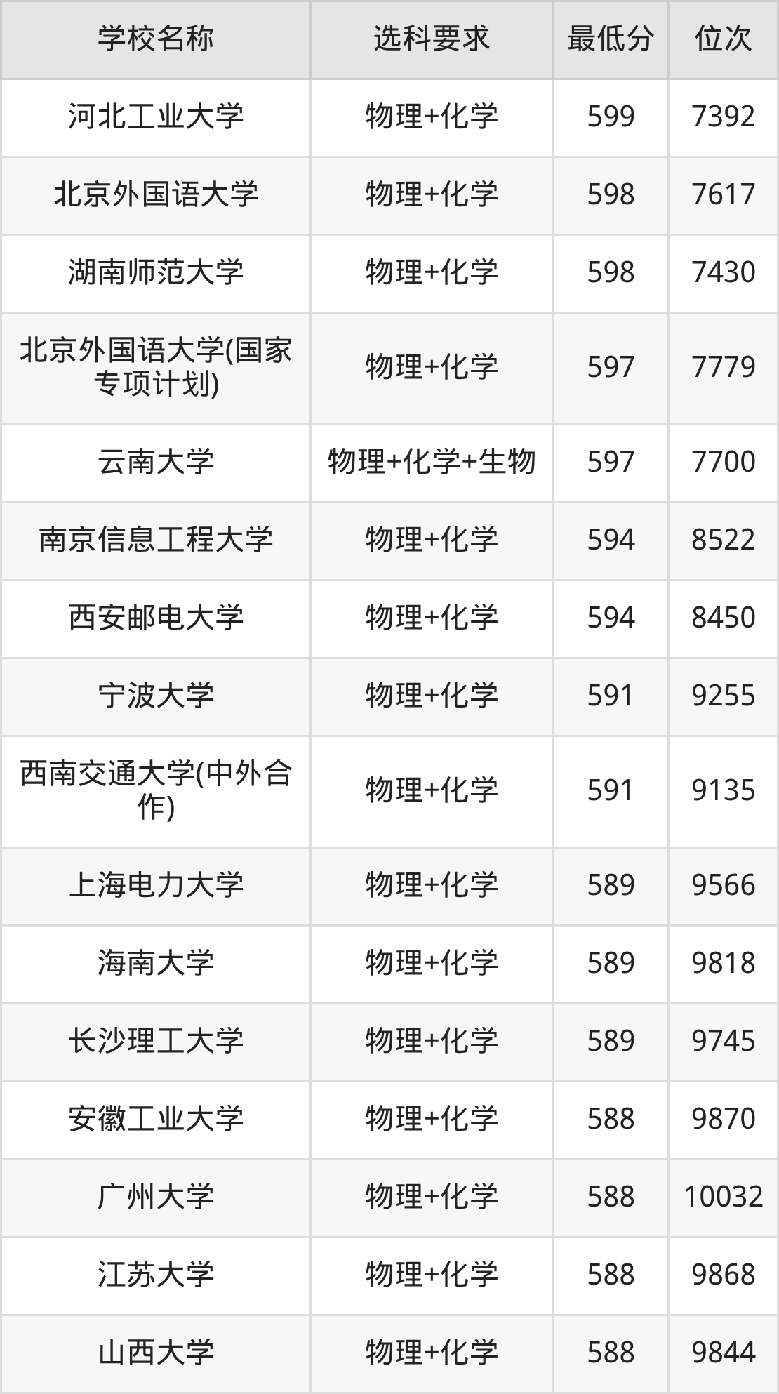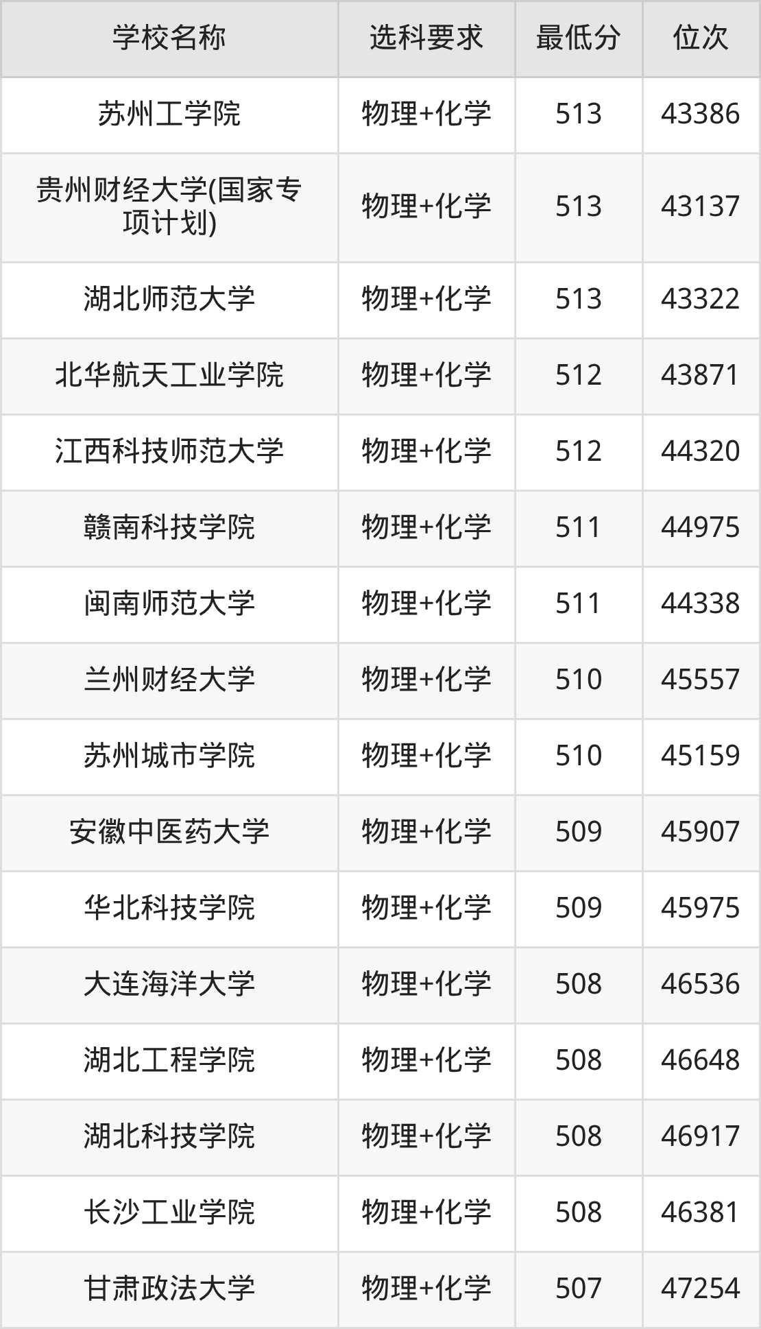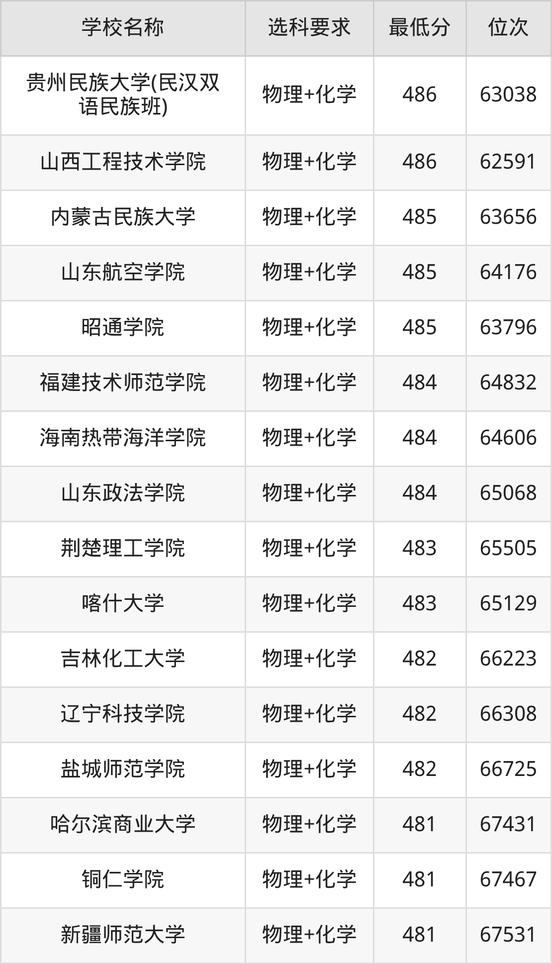 在贵州招生的院校中,有478所要求考生必选“物理+化学”,如南京大学、国防科技大学等;有2所要求考生必选“物理+化学+生物”,如云南大学、贵州师范学院。
