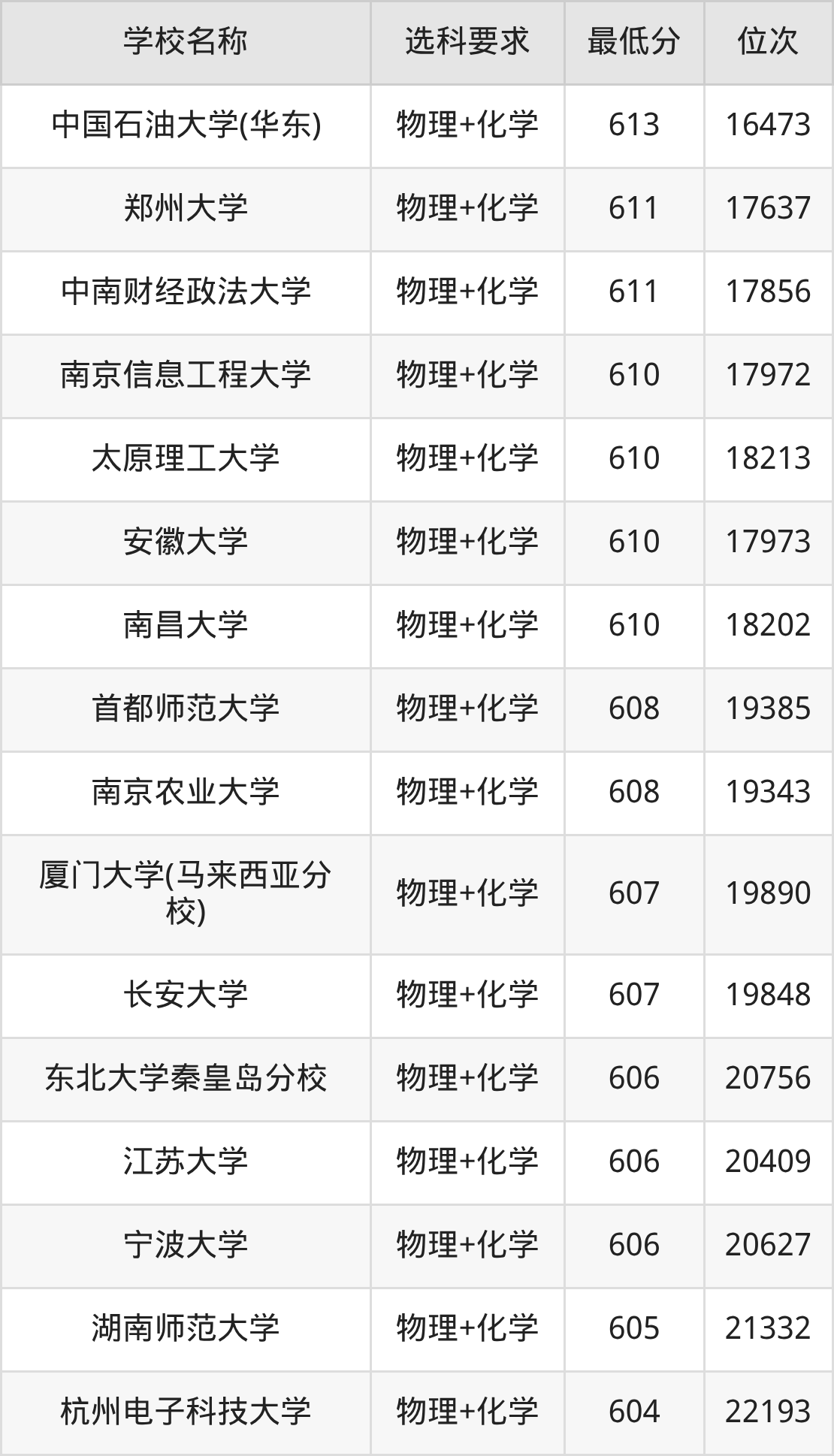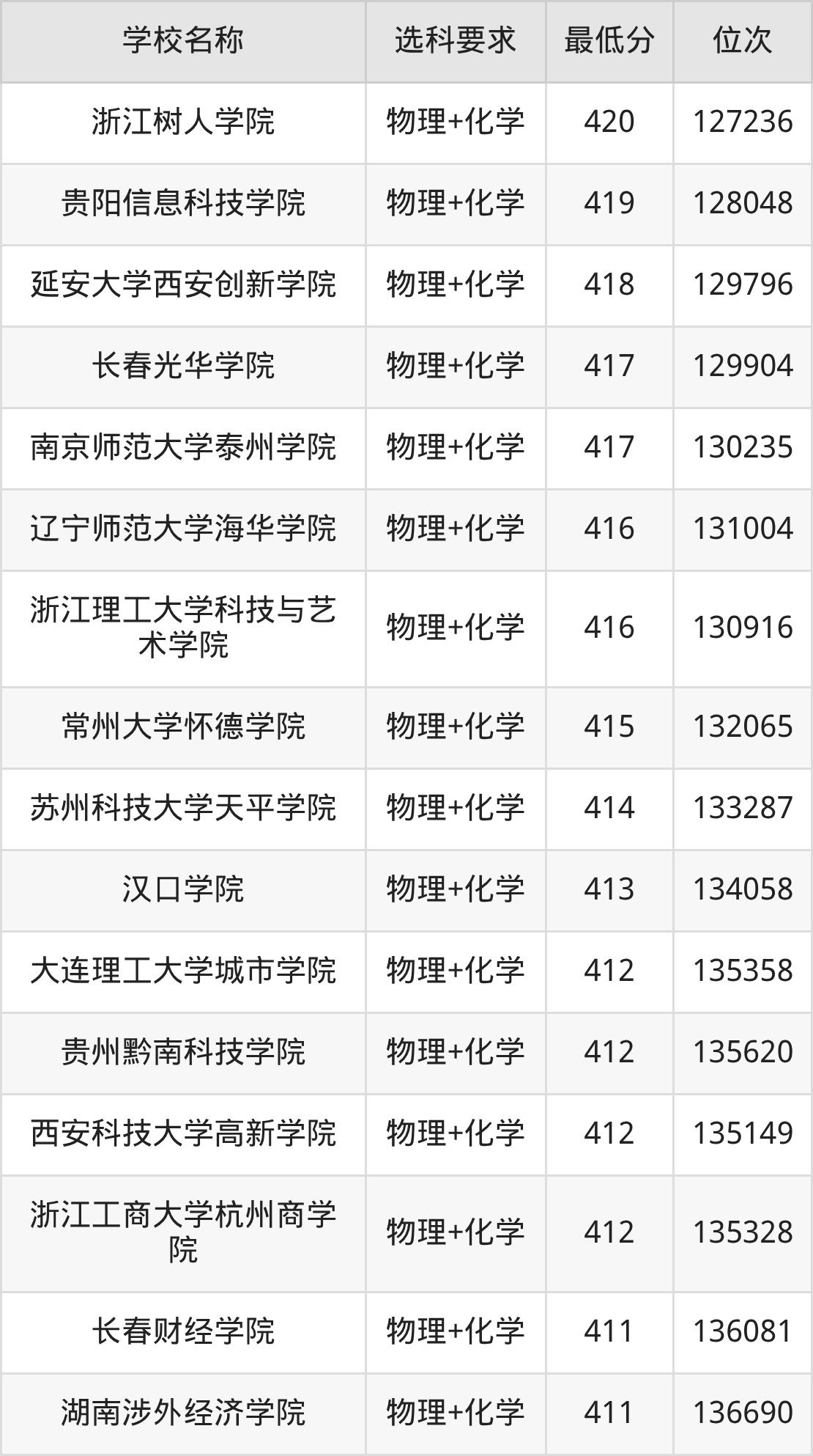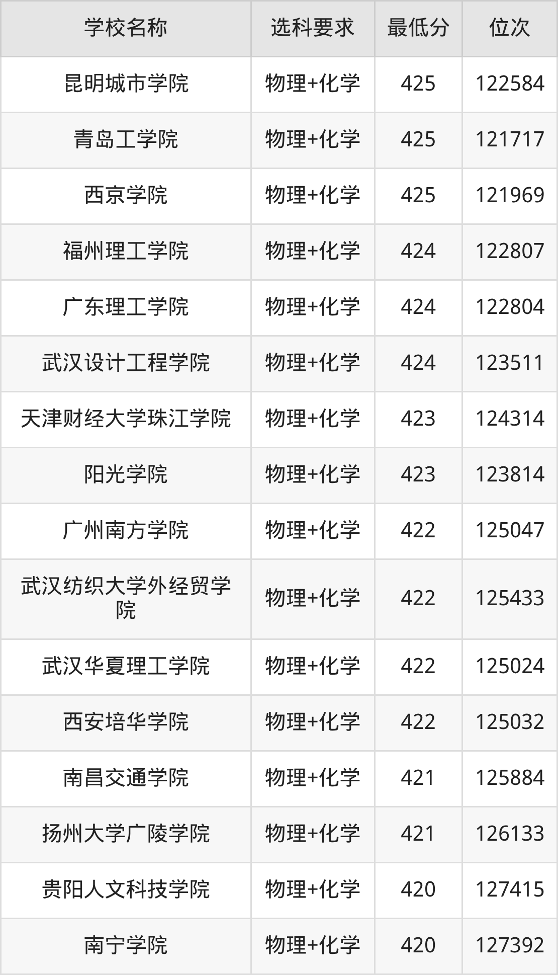 | 学校名称 | 等级 | 排名 |