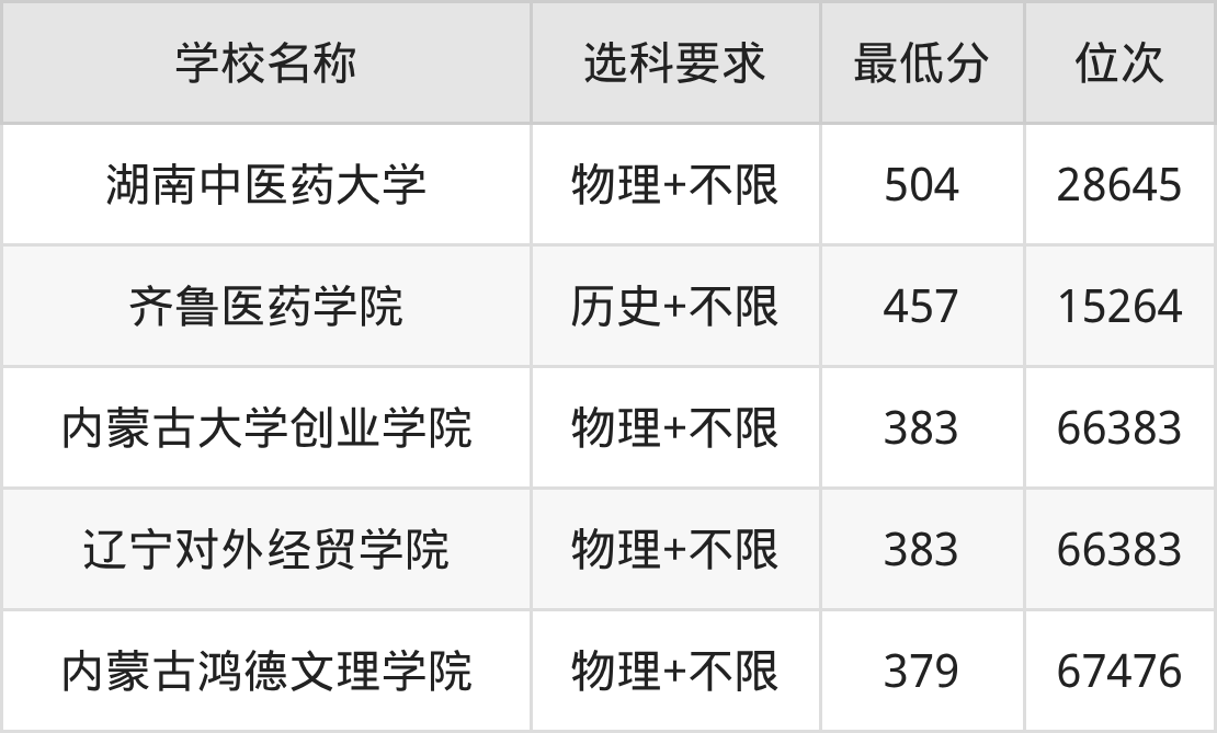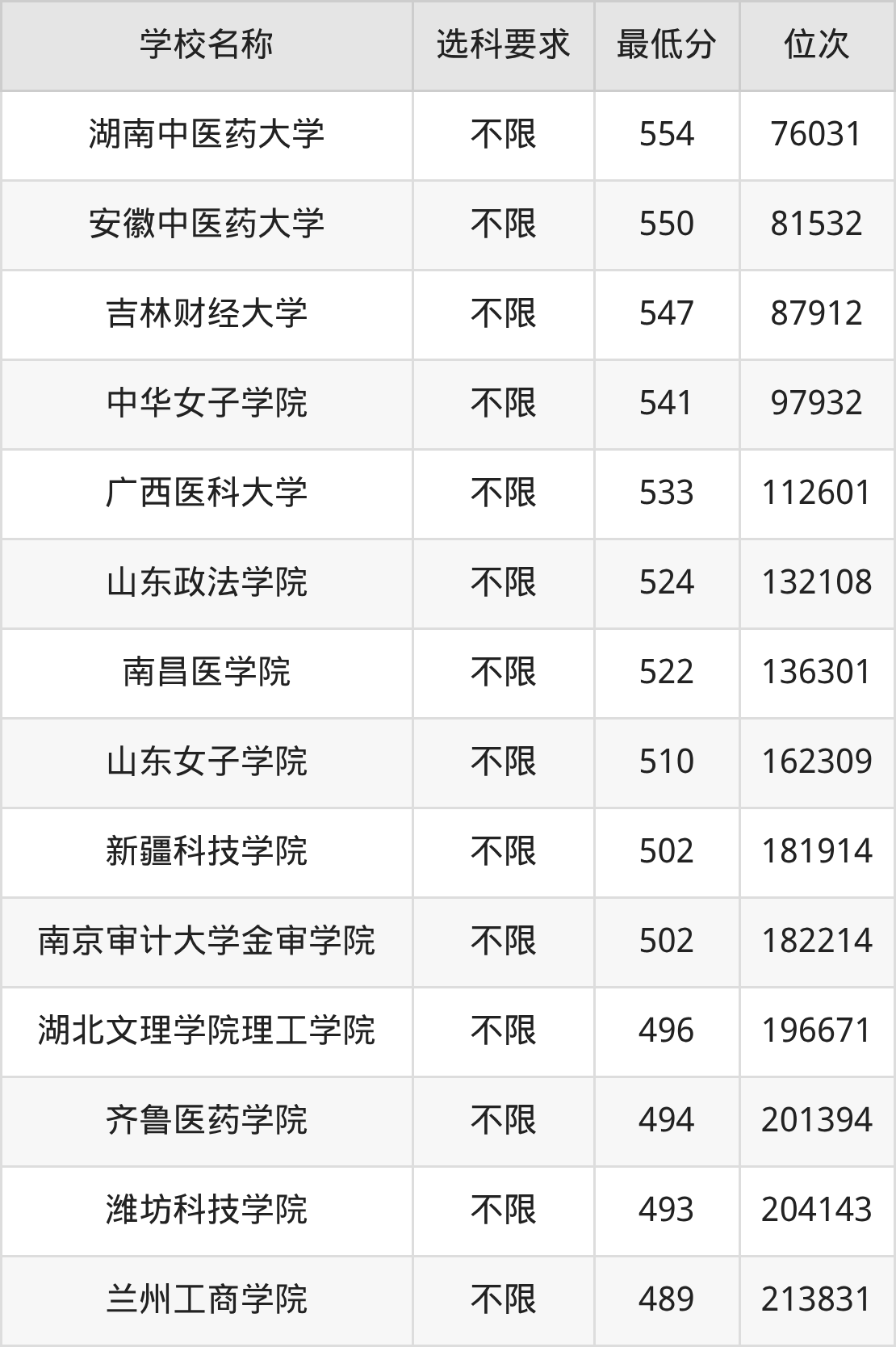 在山东招生的院校中,有14所不限选科要求,如湖南中医药大学、安徽中医药大学等。