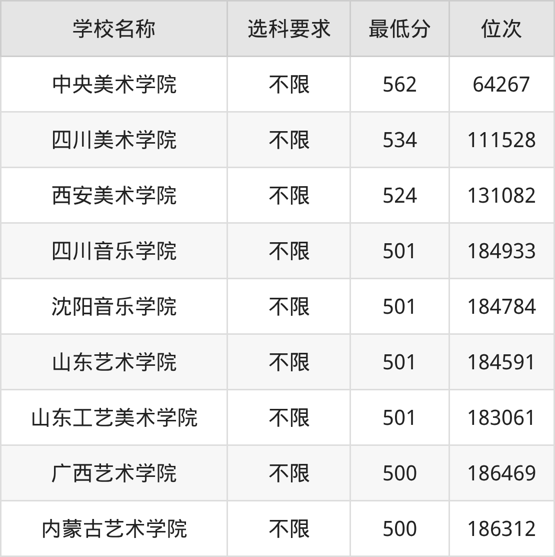 需要注意的是,艺术史论专业大学中有9所不限选科要求,如中央美术学院、四川美术学院等,因此大家在报考前要提前了解清楚专业选科要求。