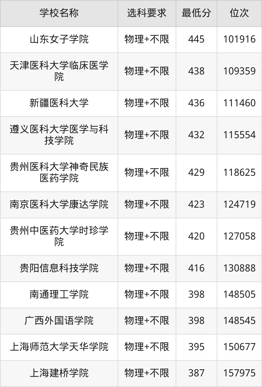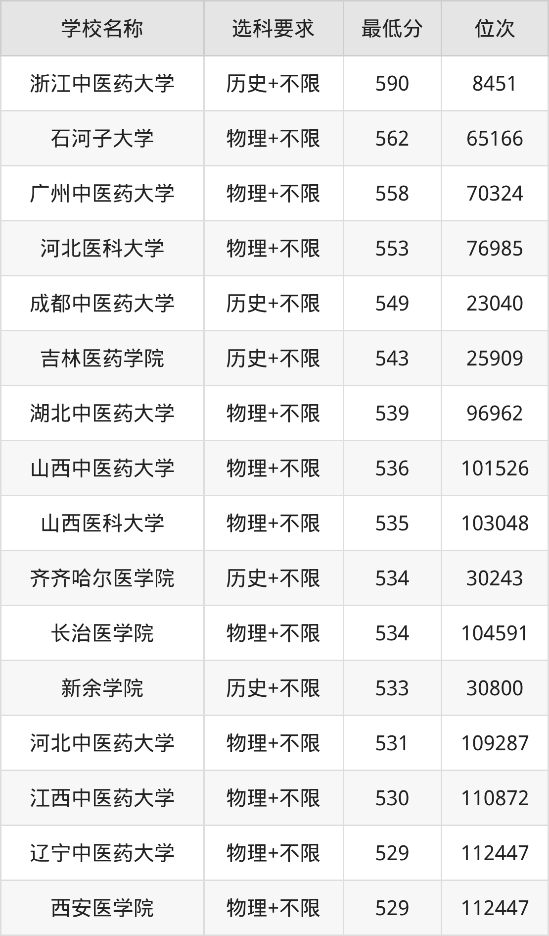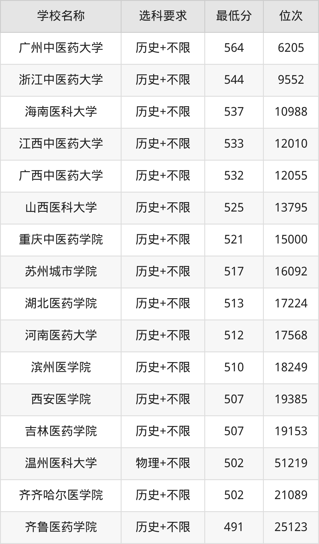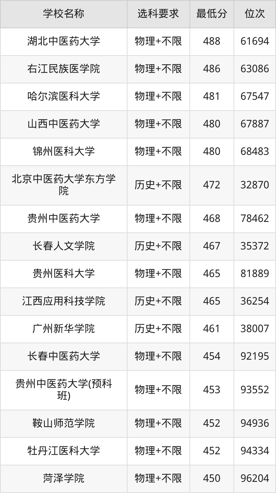 在贵州招生的院校中,有25所不限选科要求(物理组),如温州医科大学、湖北中医药大学等;有19所不限选科要求(历史组),如广州中医药大学、浙江中医药大学等。