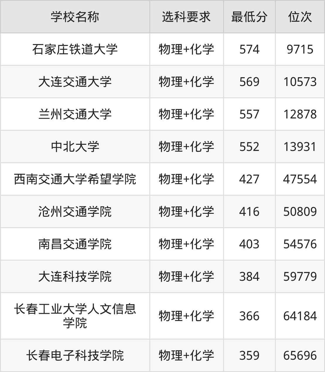 需要注意的是,轨道交通信号与控制专业大学中有10所要求考生必选“物理+化学”,如石家庄铁道大学、大连交通大学等,因此大家在报考前要提前了解清楚专业选科要求。