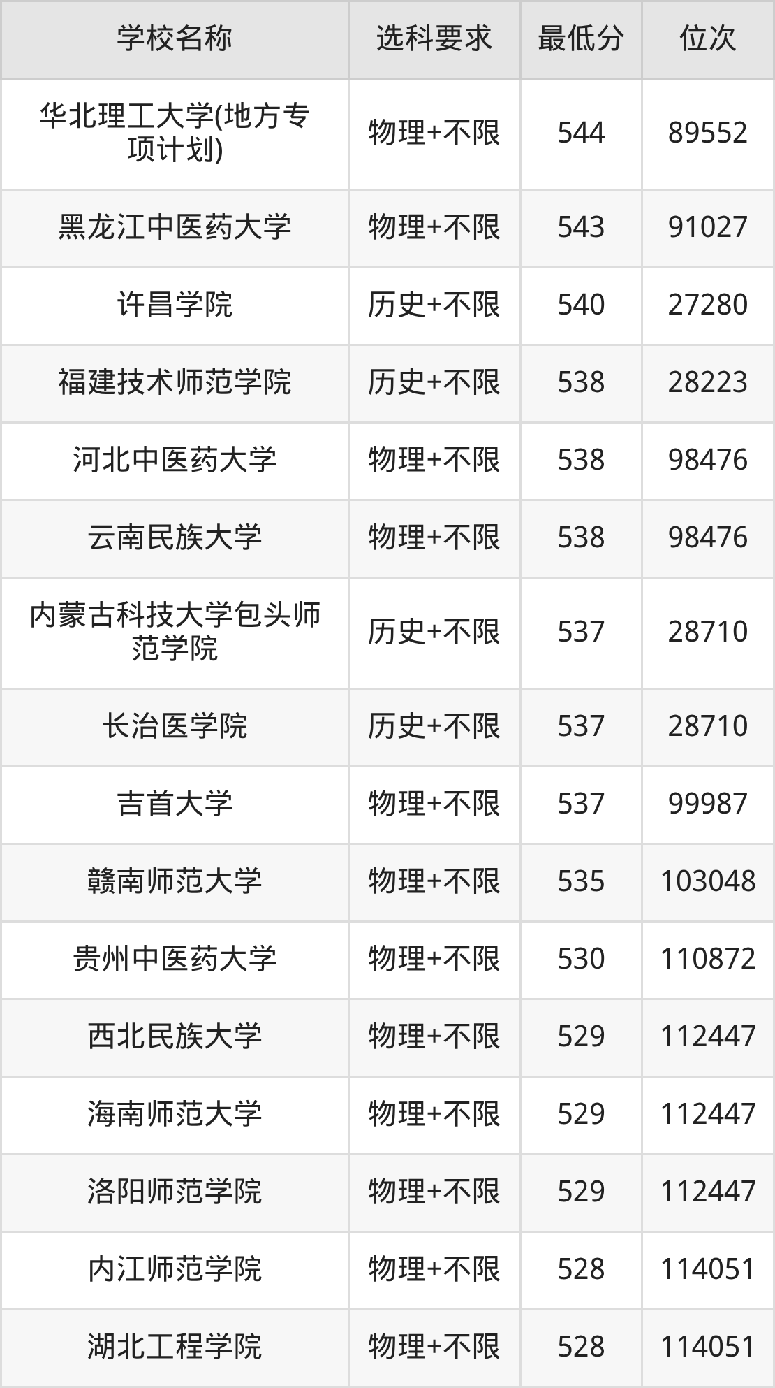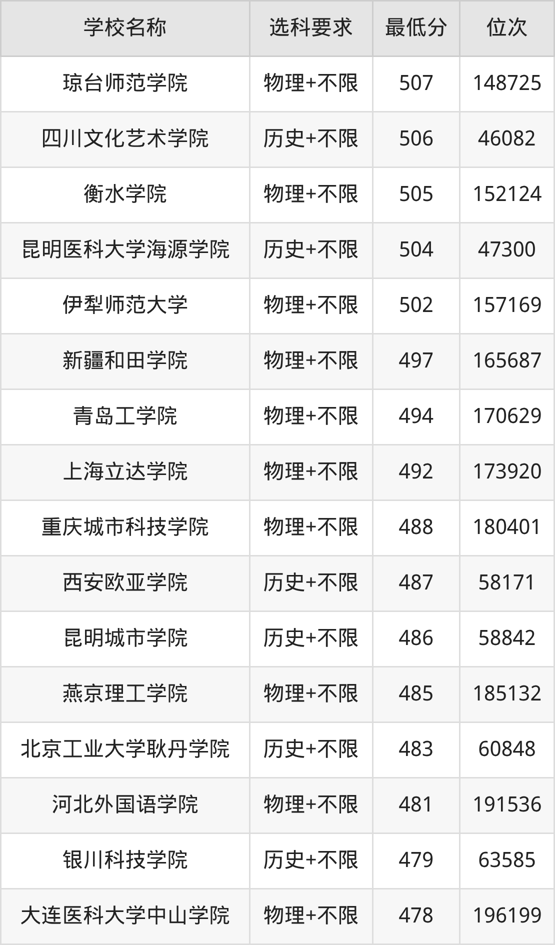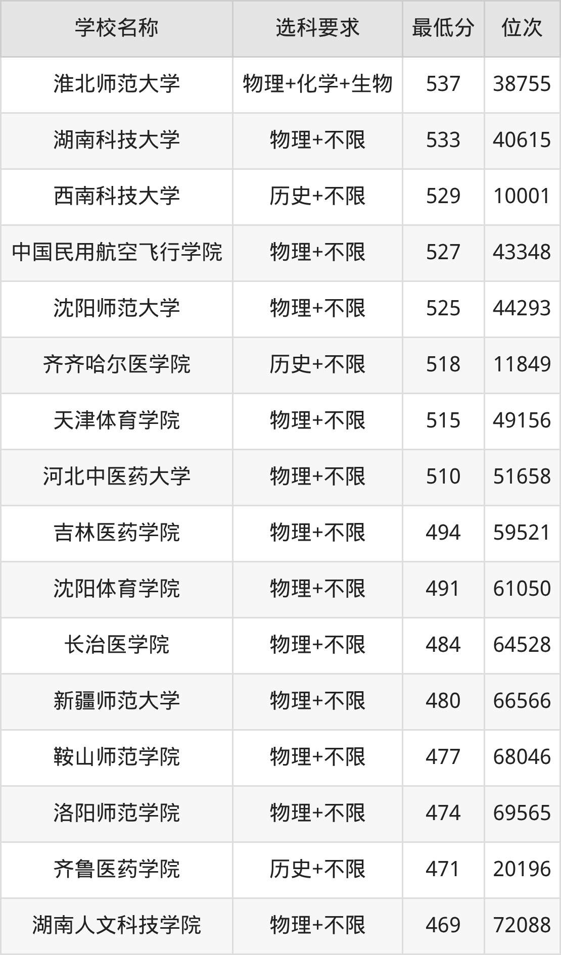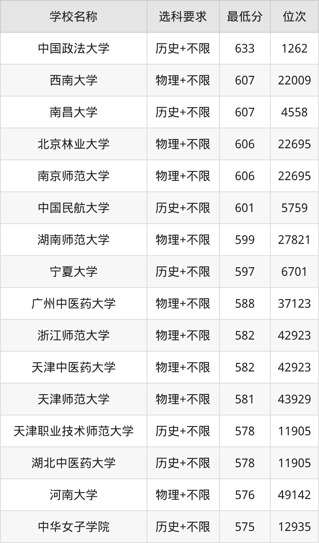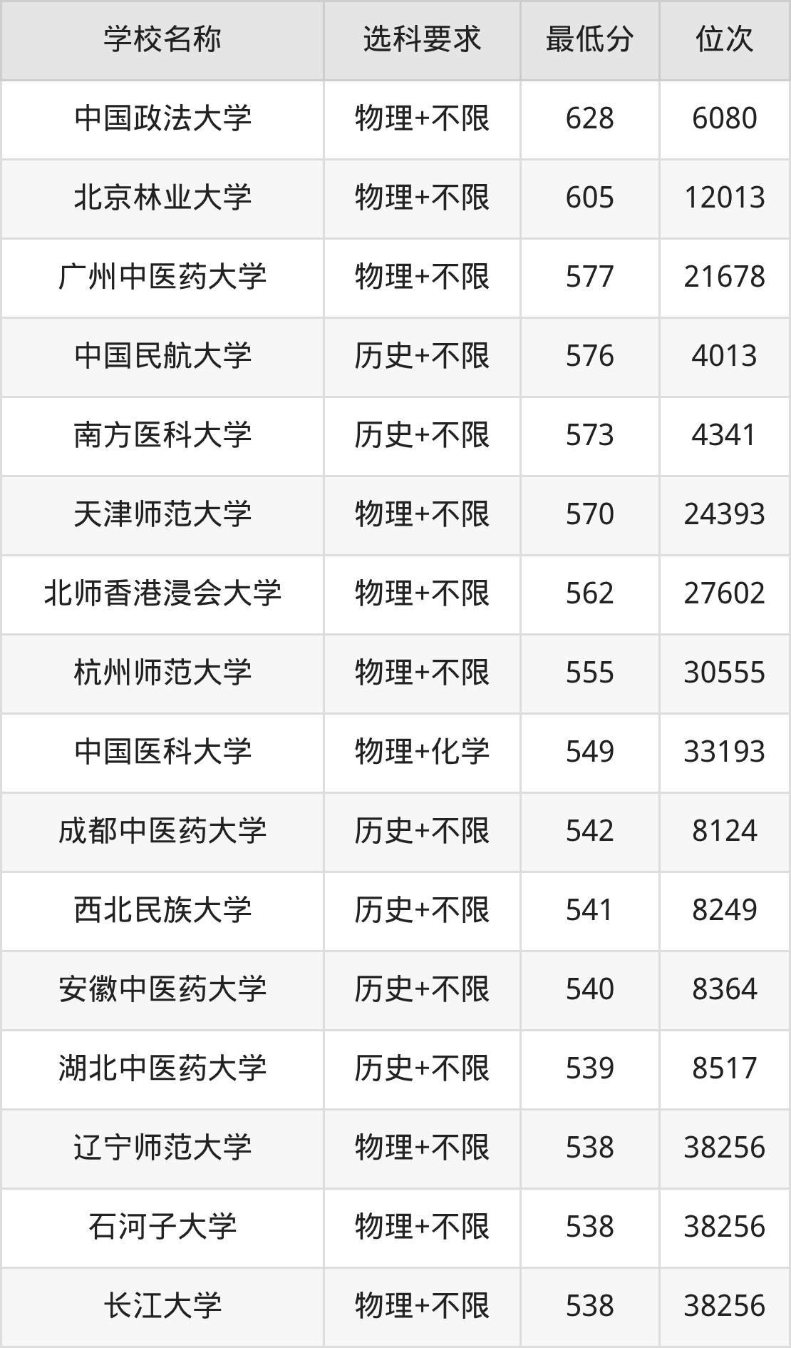 在辽宁招生的院校中,有28所不限选科要求(物理组),如中国政法大学、北京林业大学等;有12所不限选科要求(历史组),如中国民航大学、南方医科大学等。