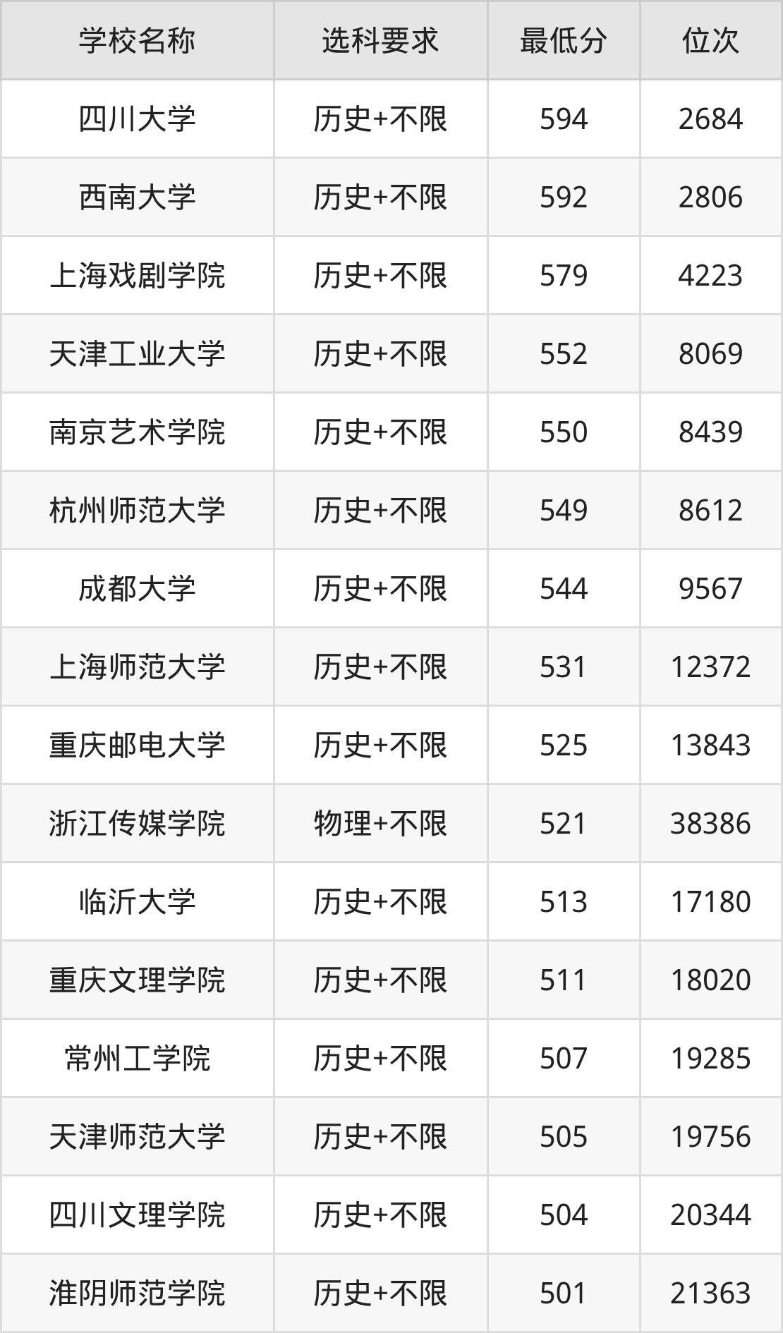 需要注意的是,广播电视编导专业大学中有29所不限选科要求(历史组),如四川大学、西南大学等;有14所不限选科要求(物理组),如浙江传媒学院、长春工业大学等,因此大家在报考前要提前了解清楚专业选科要求。