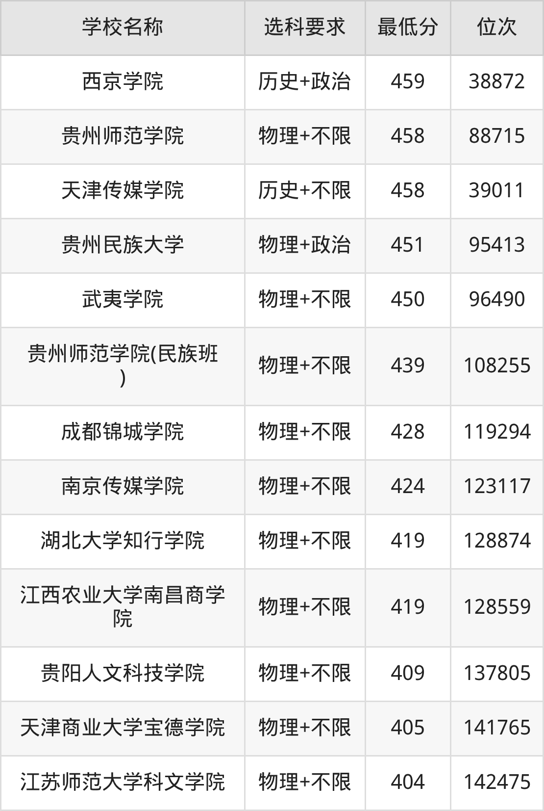 2025年广播电视编导在贵州的招生院校共有45所,考生想要就读广播电视编导院校,至少要考到404分及以上,省排名位次需在142475名以内。