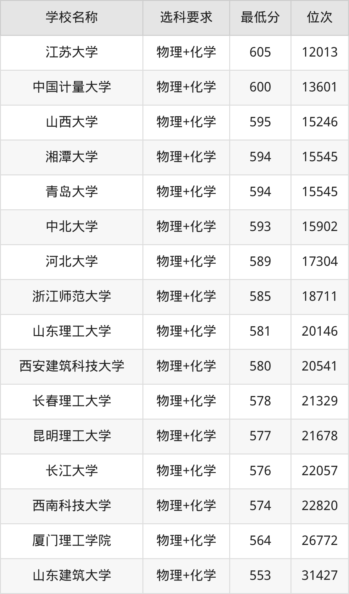 | 学校名称 | 等级 | 排名 |