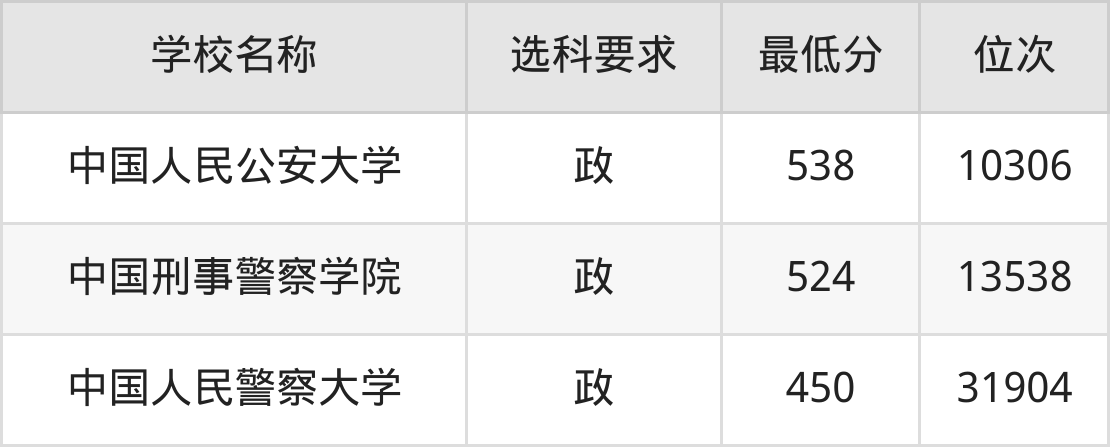 | 中国刑事警察学院 | B | 3 |