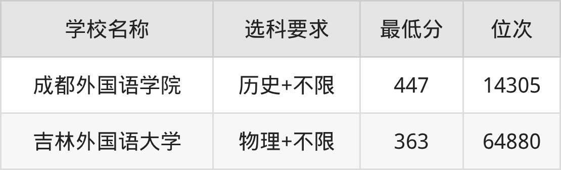 需要注意的是,意大利语专业大学中有1所不限选科要求(历史组),如成都外国语学院;有1所不限选科要求(物理组),如吉林外国语大学,因此大家在报考前要提前了解清楚专业选科要求。