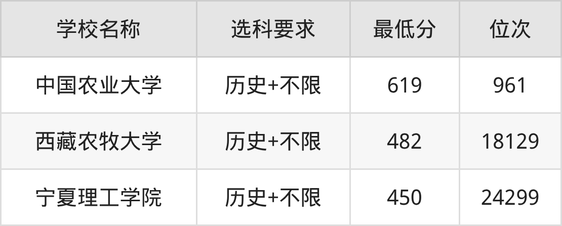 需要注意的是,农村区域发展专业大学中有3所不限选科要求(历史组),如中国农业大学、西藏农牧大学等,因此大家在报考前要提前了解清楚专业选科要求。